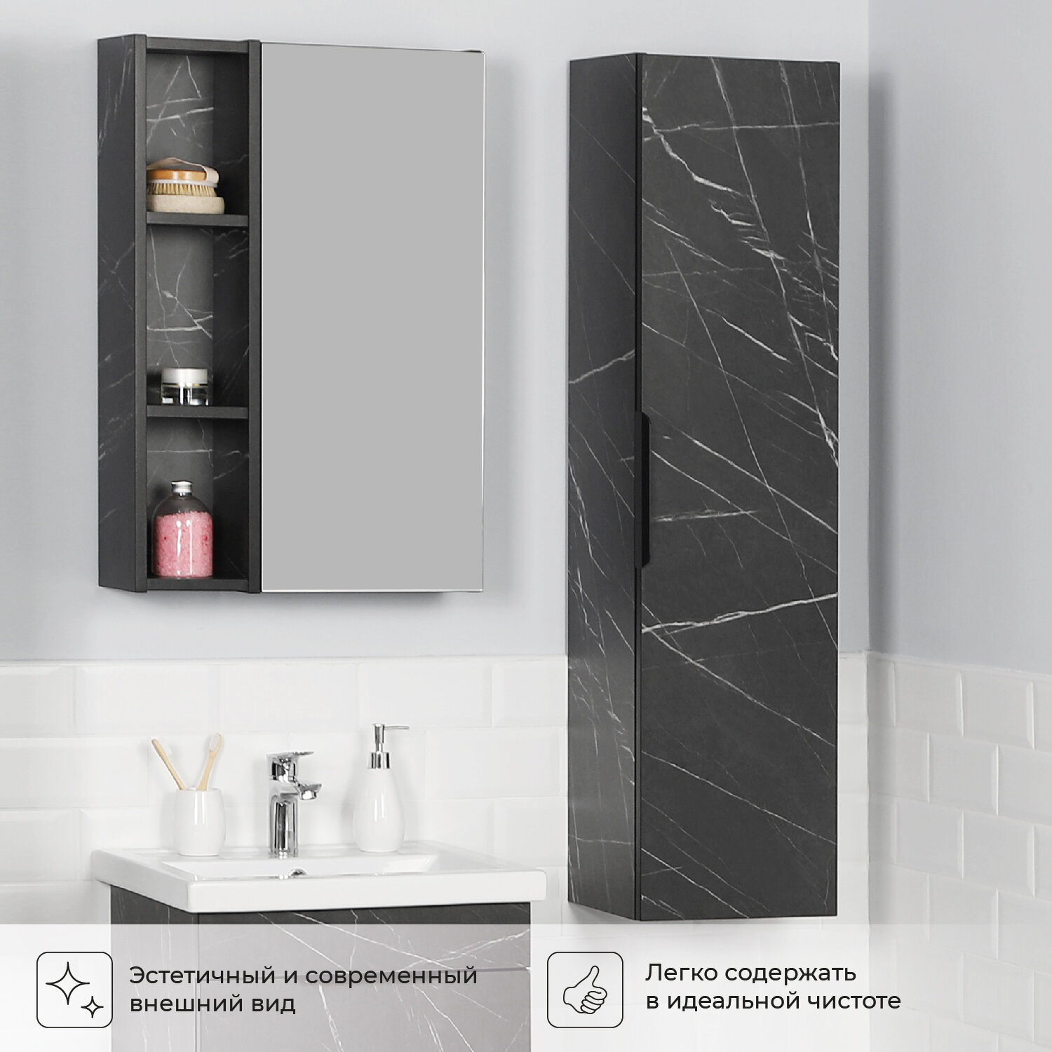 Шкаф пенал для ванной Итана Alta 30 300х250х1200 Камень Пьетра Гриджиа черный навесной интересное: