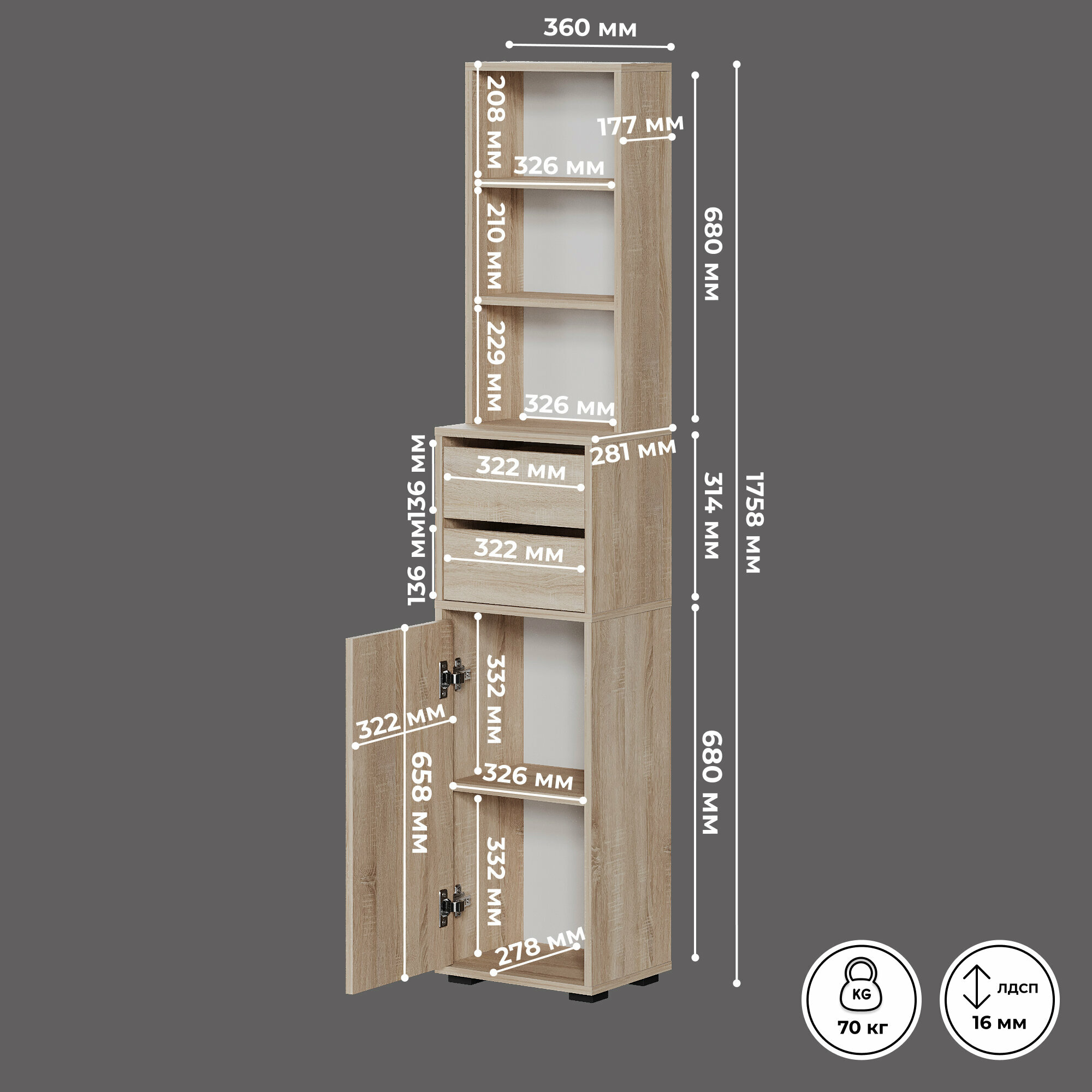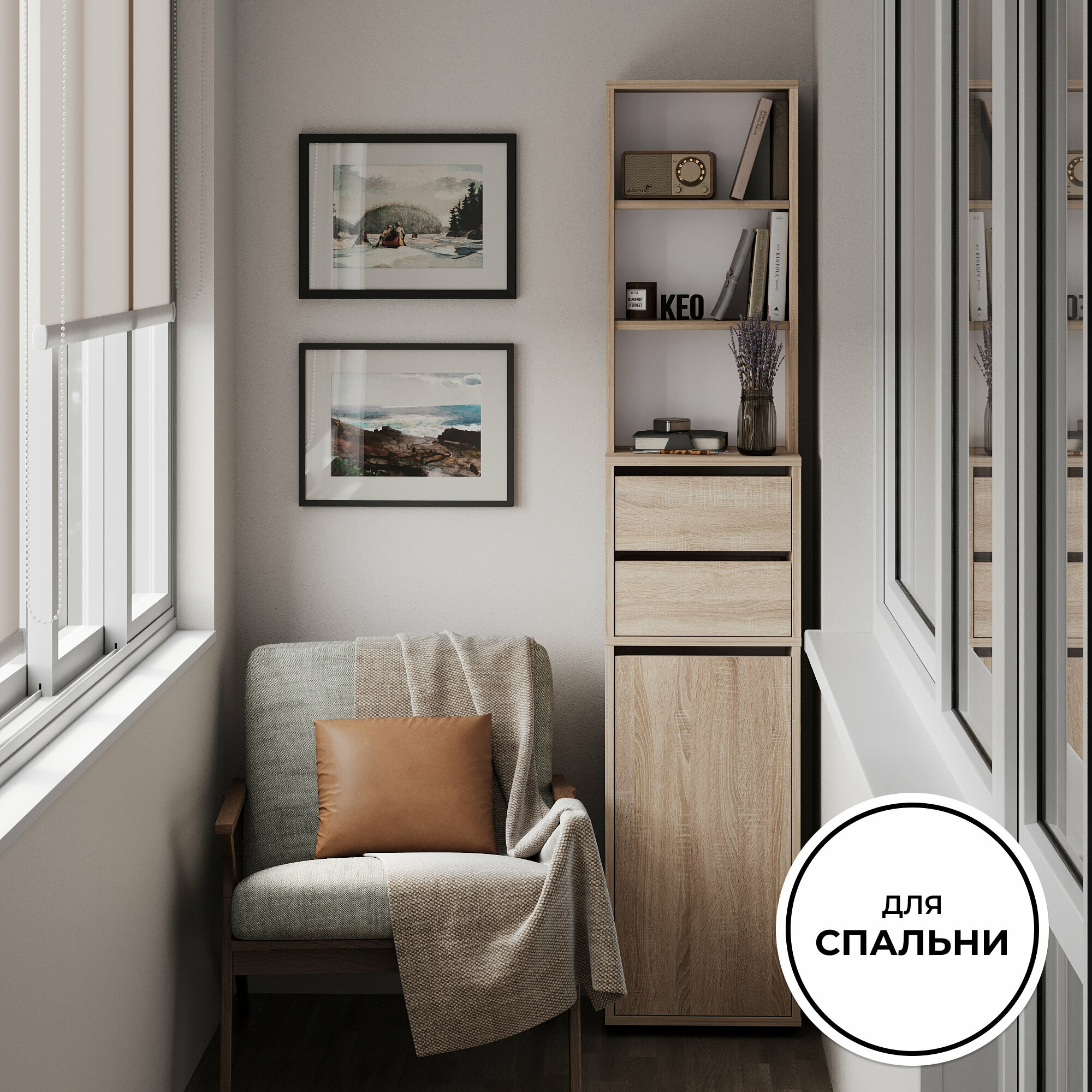 СохранитьШкаф пенал напольный 176,3х28,1х36см с ящиками и полками для прихожей балкона деревянный Кео ШКН-402 дуб сонома бежевый интересное:
