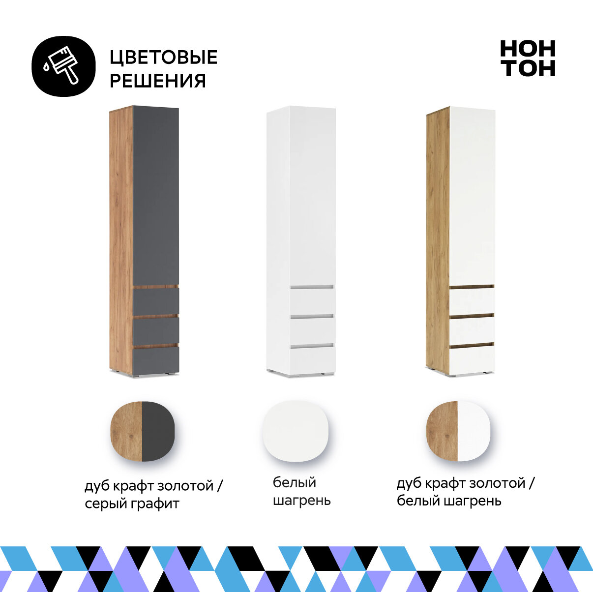 Шкаф-пенал распашной для одежды Нонтон, Ирма, белый шагрень, 40 см