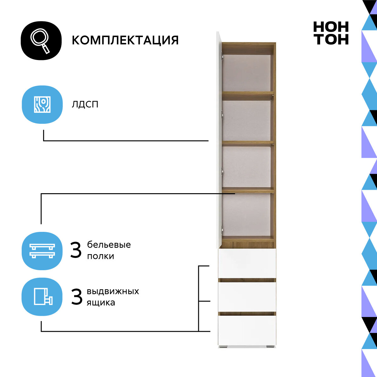 Шкаф-пенал с полками и ящиками Нонтон Ирма, дуб крафт золото / белый шагрень, 40 см интересное: