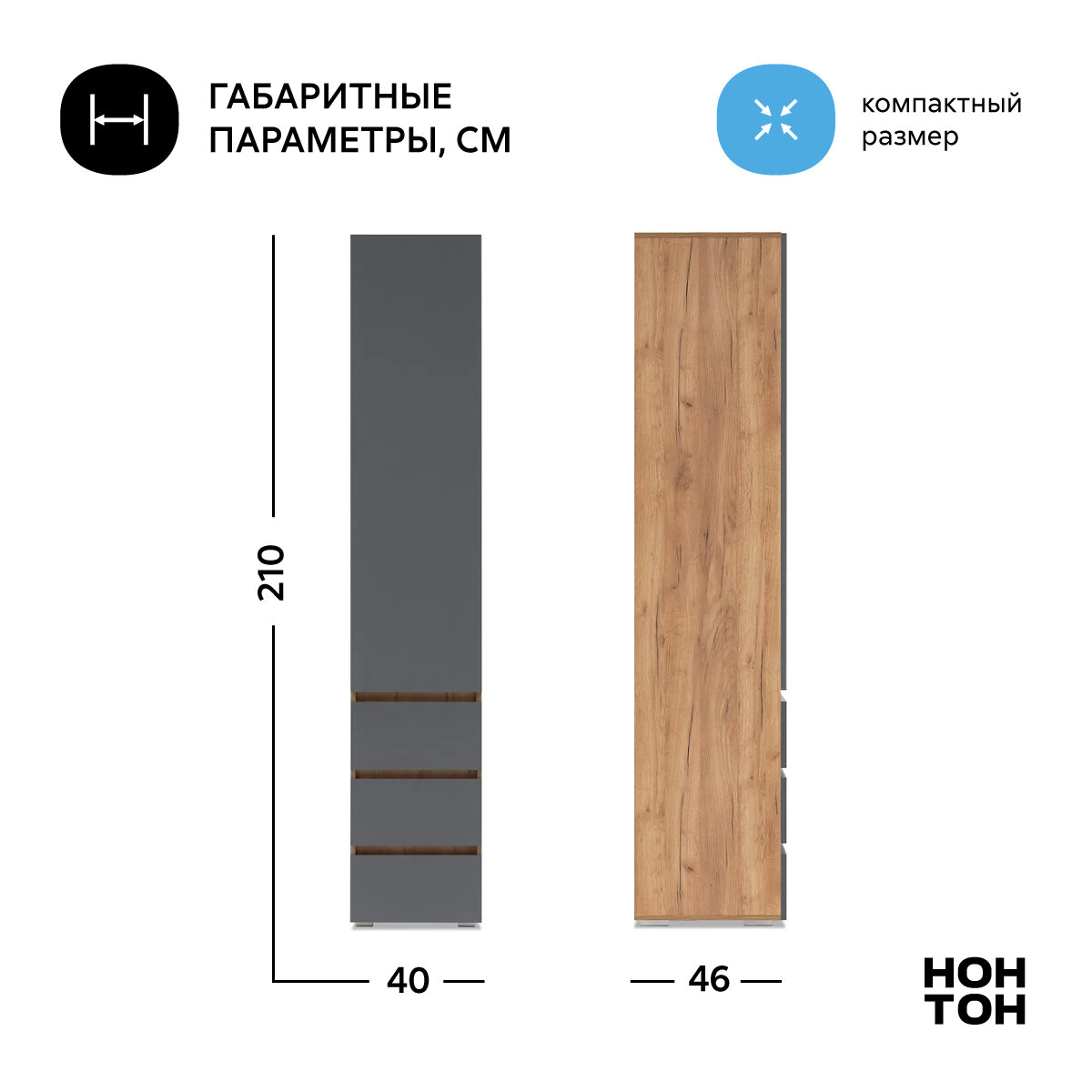 Шкаф-пенал для одежды Нонтон Ирма дуб крафт золото / серый графит 40 см