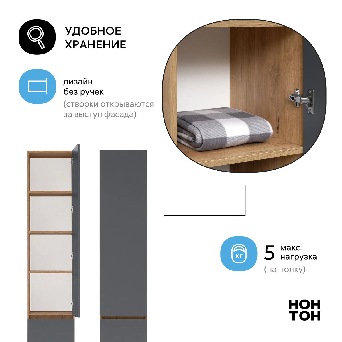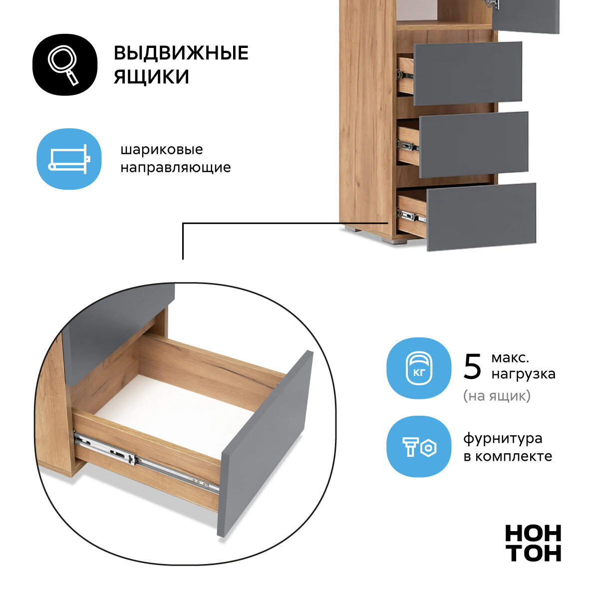 Шкаф-пенал с полками и ящиками Нонтон Ирма, дуб крафт золото / серый графит, 40 см интересное: