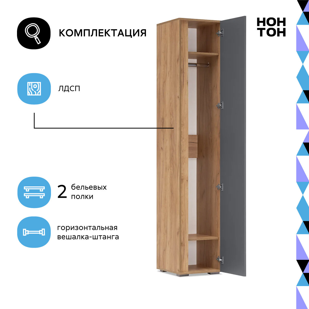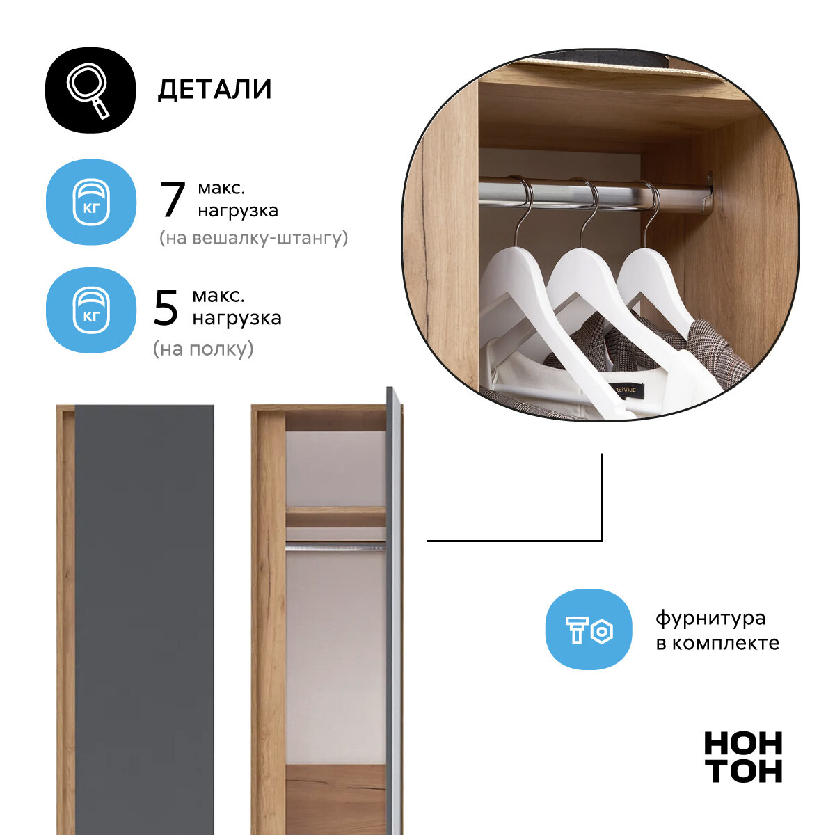 Шкаф-пенал для одежды Нонтон Ирма дуб крафт золото / серый графит 40 см интересное: