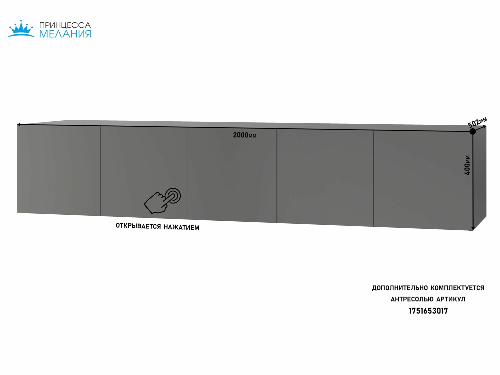 Шкаф для одежды распашной однодверный с антресолью, Принцесса Мелания, Графит, 2600х400х520 мм