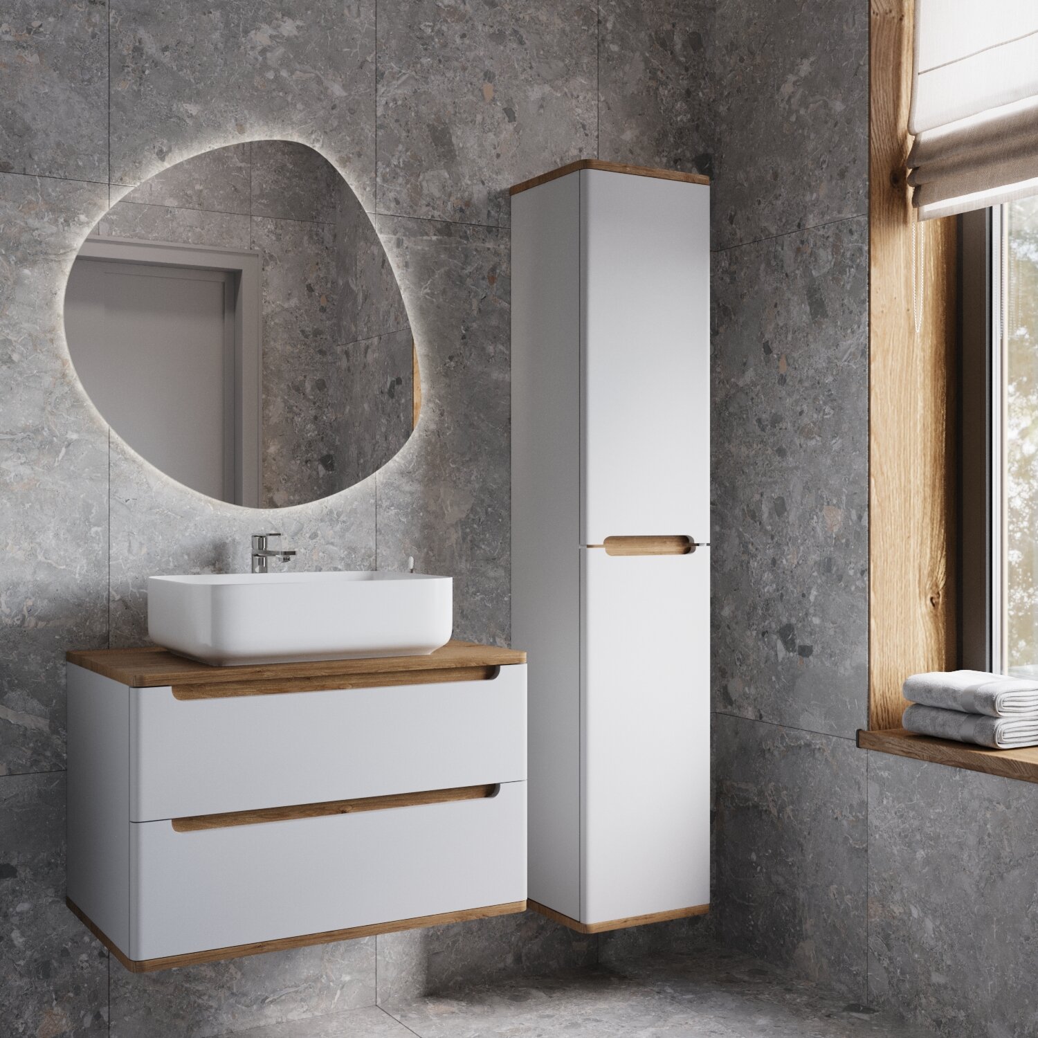 СохранитьШкаф пенал в Ванную Комнату VORQUA 170х30х35 см. TYPE002PDB подвесной белый/дуб интересное: