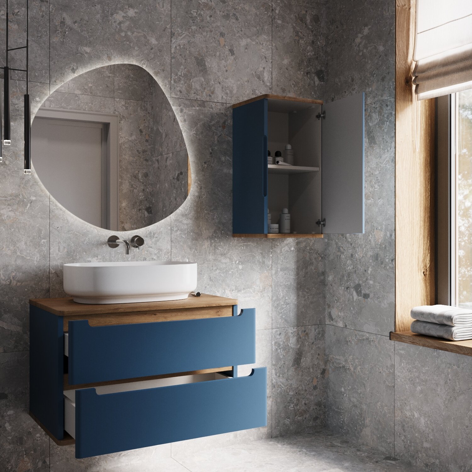 Купить Шкаф-пенал в Ванную Комнату VORQUA 70х30х35 см. TYPE002PDС синий/дуб