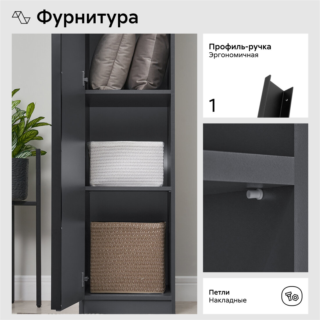 Шкаф-пенал для одежды Нонтон Луас графит серый 40 см интересное: