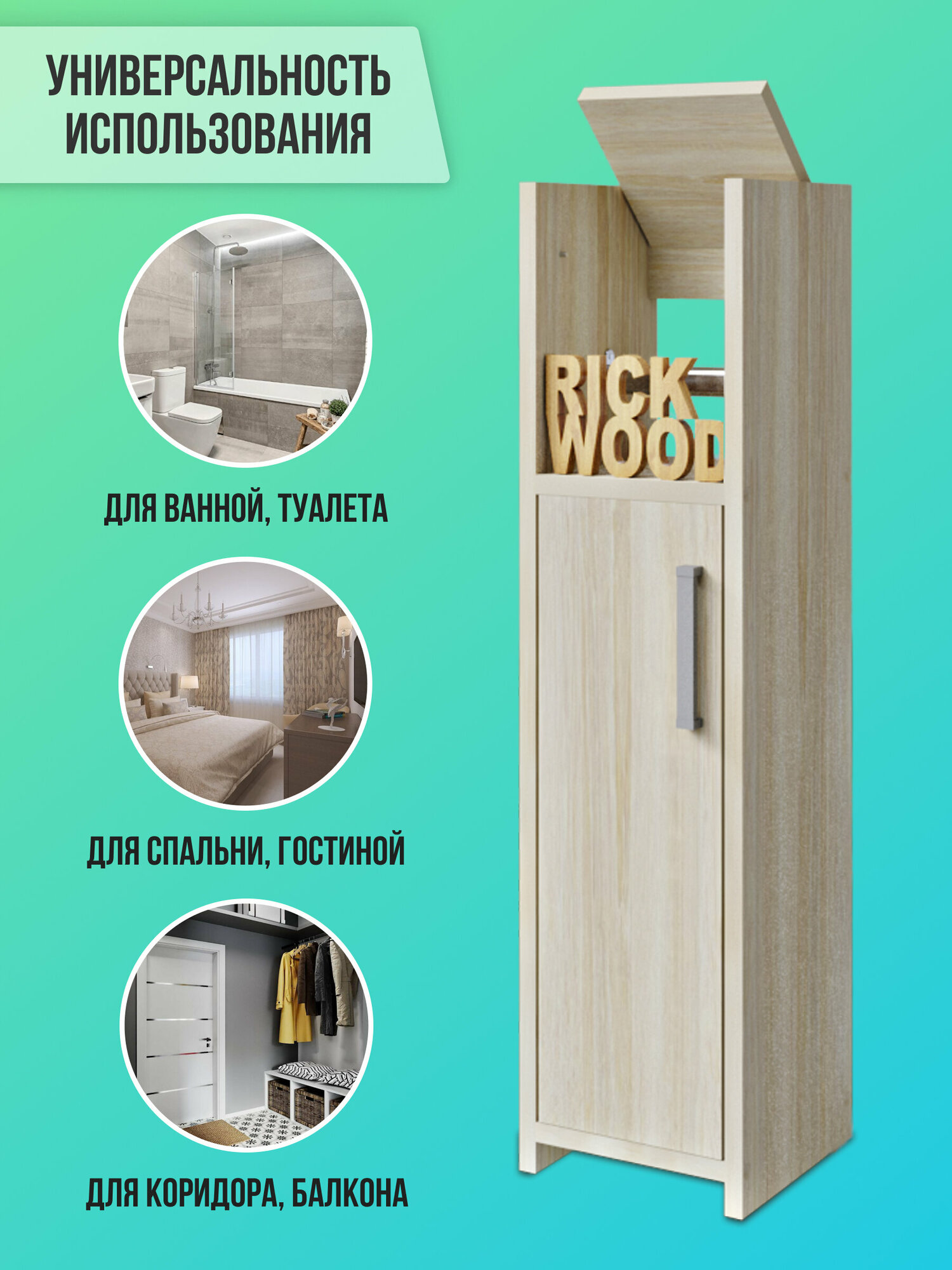 Шкаф в ванную напольный, тумба для туалета, шкаф пенал, узкий шкаф в ванную, Rick Wood, цвет Сонома интересное:
