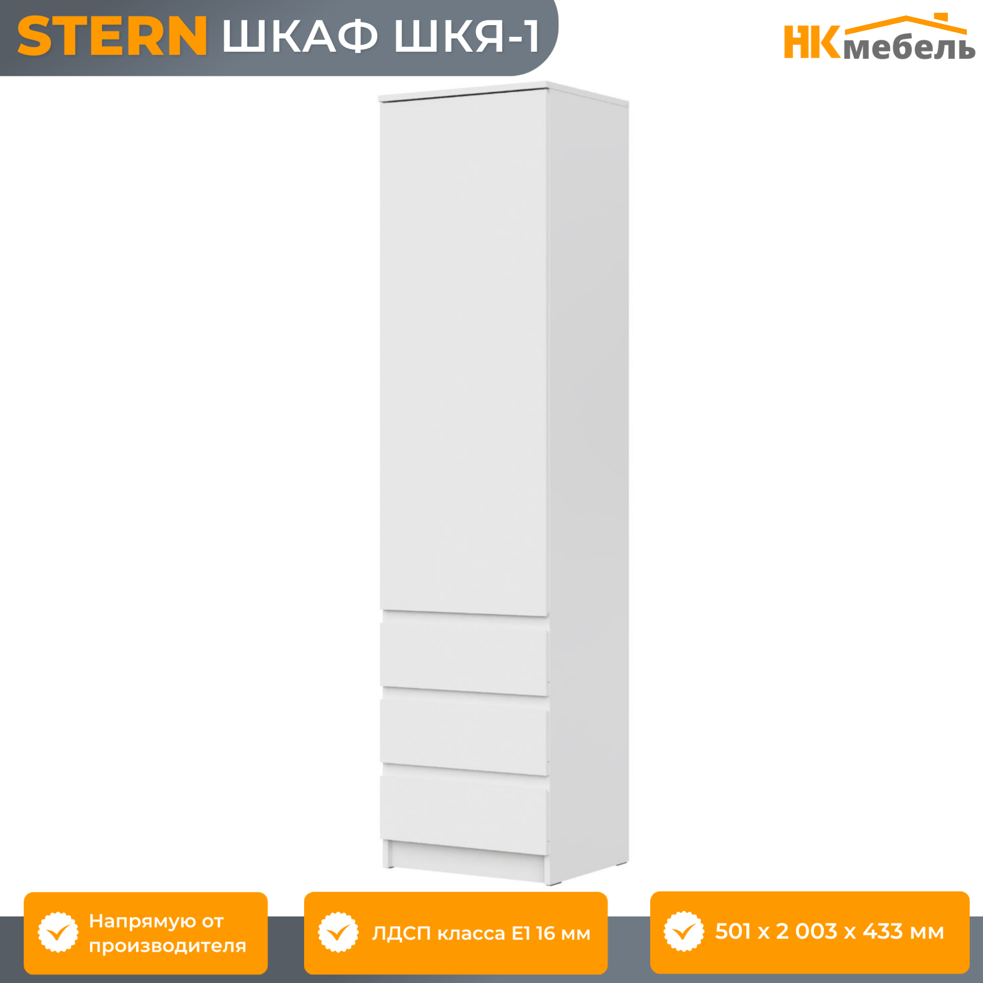 STERN (штерн) ШКЯ-1 шкаф-пенал, 50,1 х 200,3 х 43,3 см, Белый, ЛДСП интересное: