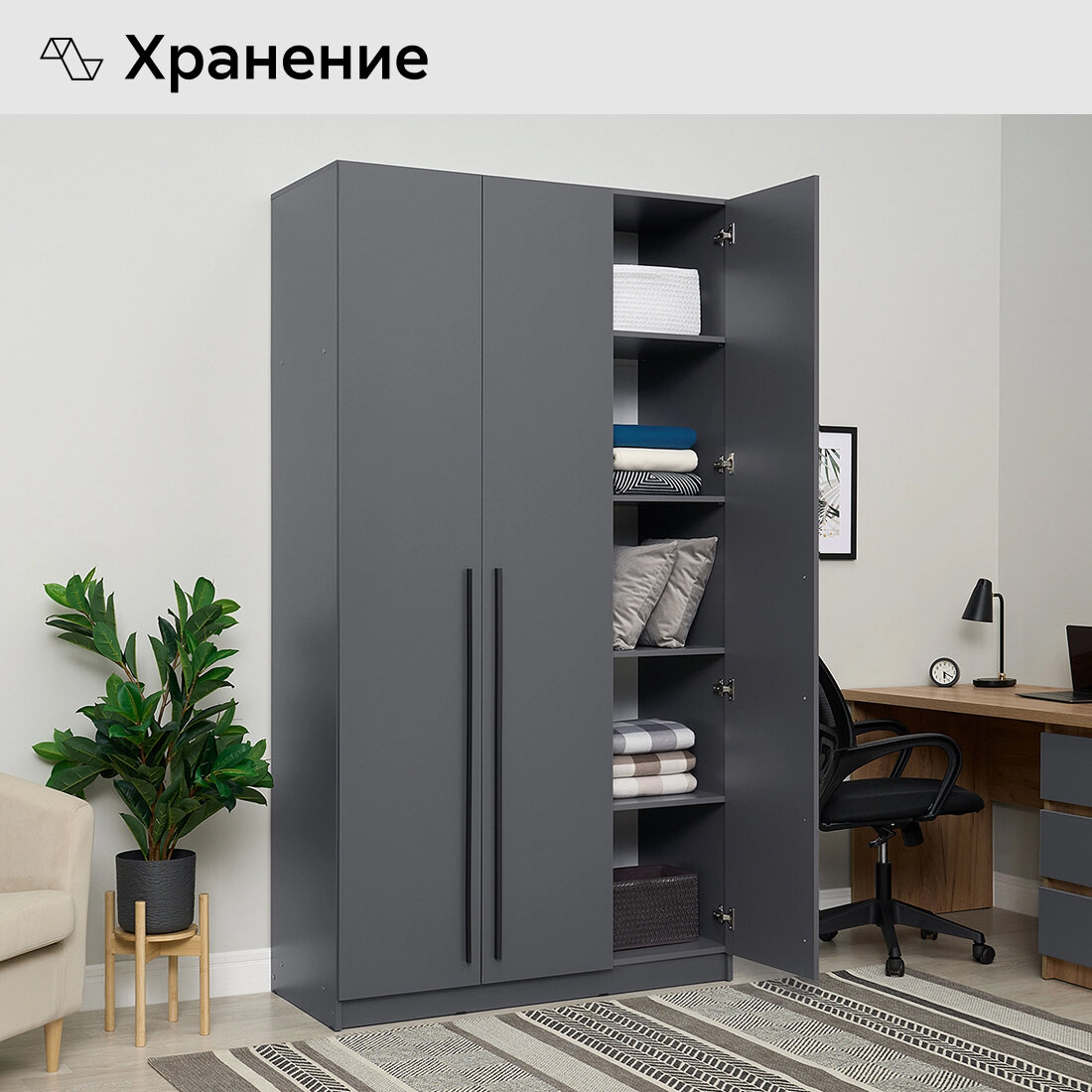 Купить Шкаф для одежды с полками распашной Нонтон Берген, серый графит, 120х52х220 см
