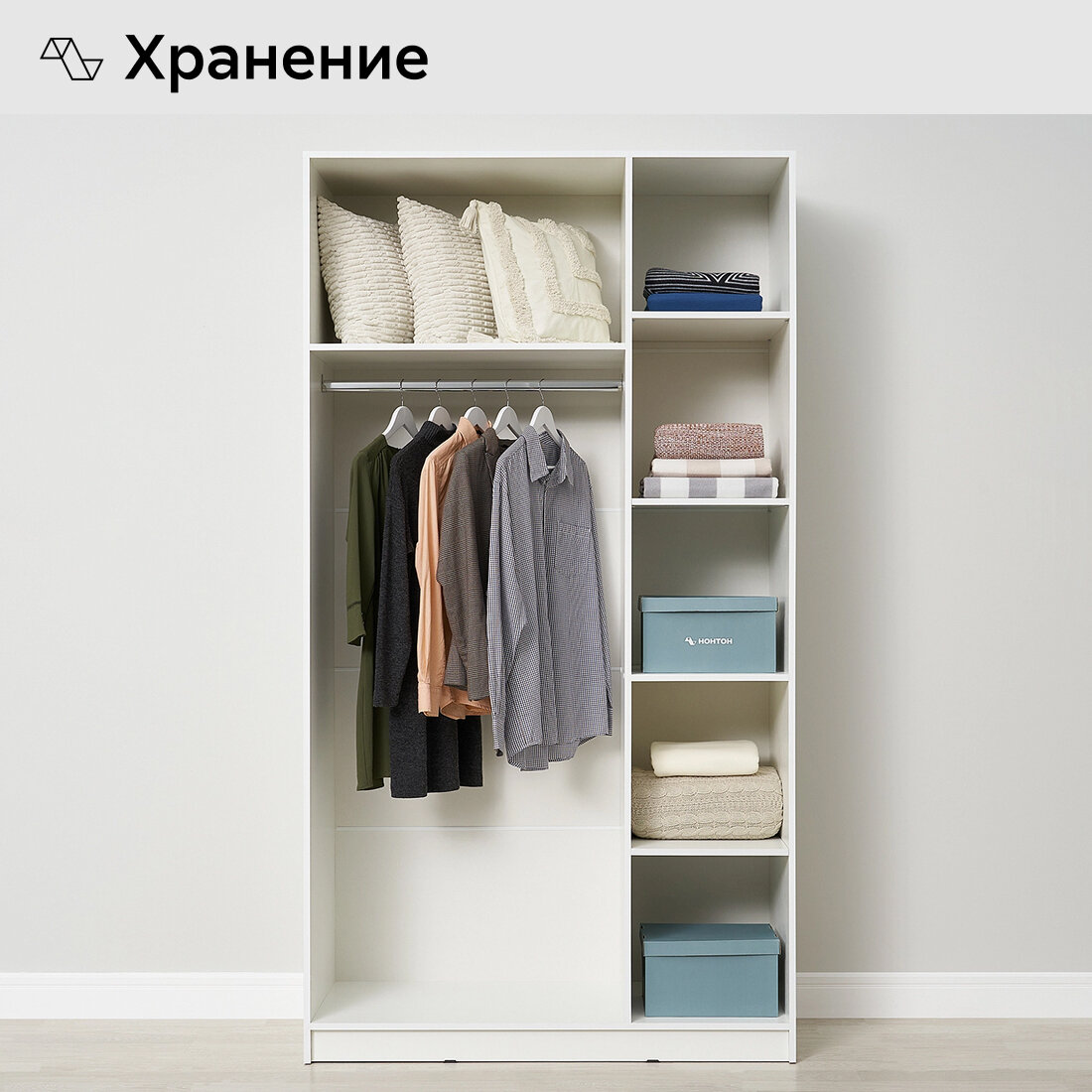 Шкаф для одежды распашной Нонтон Луас, 120 см, 7 полок и штанга, белый глянец