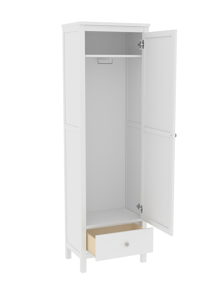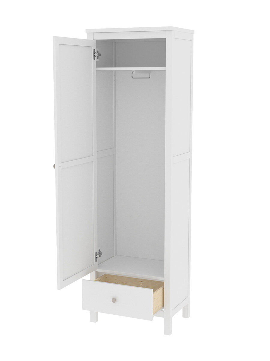 Шкаф для одежды распашной Нонтон Луас, 120 см, 7 полок и штанга, белый глянец