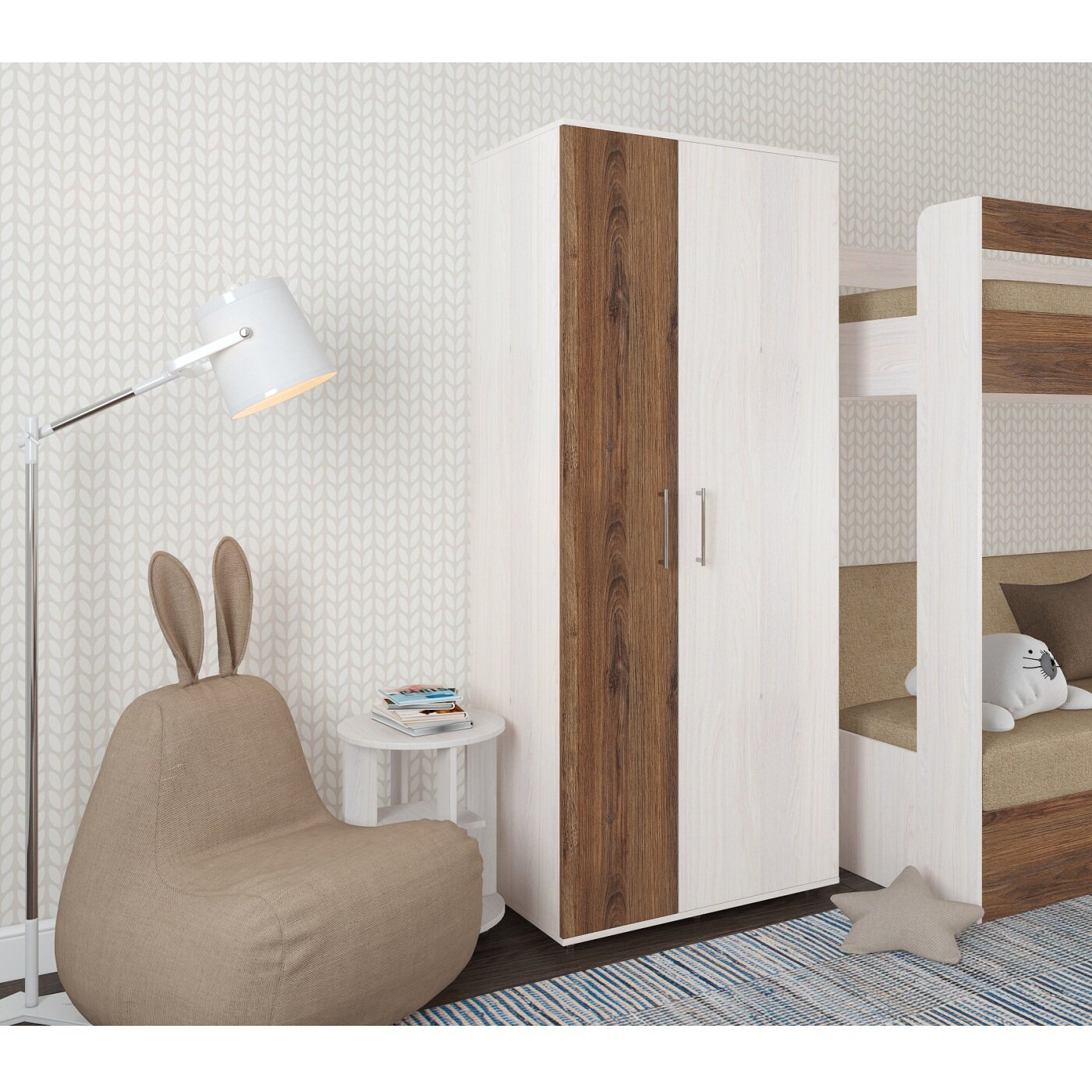 Шкаф двухстворчатый, с полками, со штангой Есэндвич Лаворо, правый, 80x50х190 см (Белый/Анкор белый)