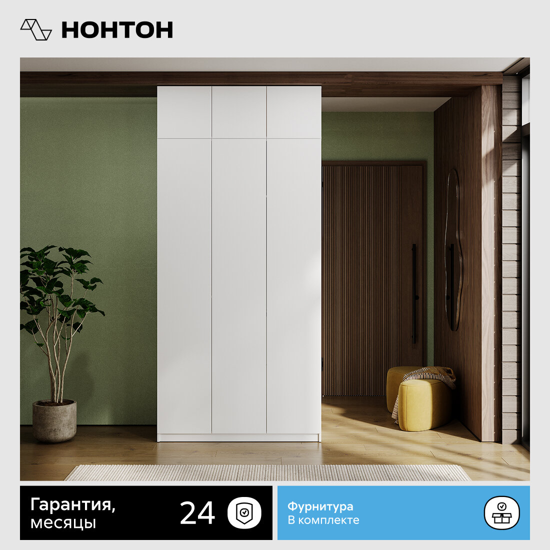 Шкаф для одежды распашной Нонтон Луас, 120 см, 7 полок и штанга, белый глянец