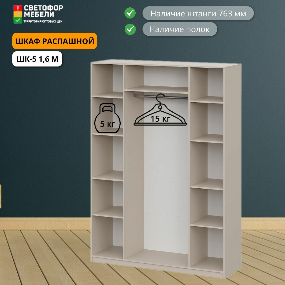 Шкаф распашной Мебельный рай ШК-5 1,6 1601х2216х506, Меланж, с комплектом полок
