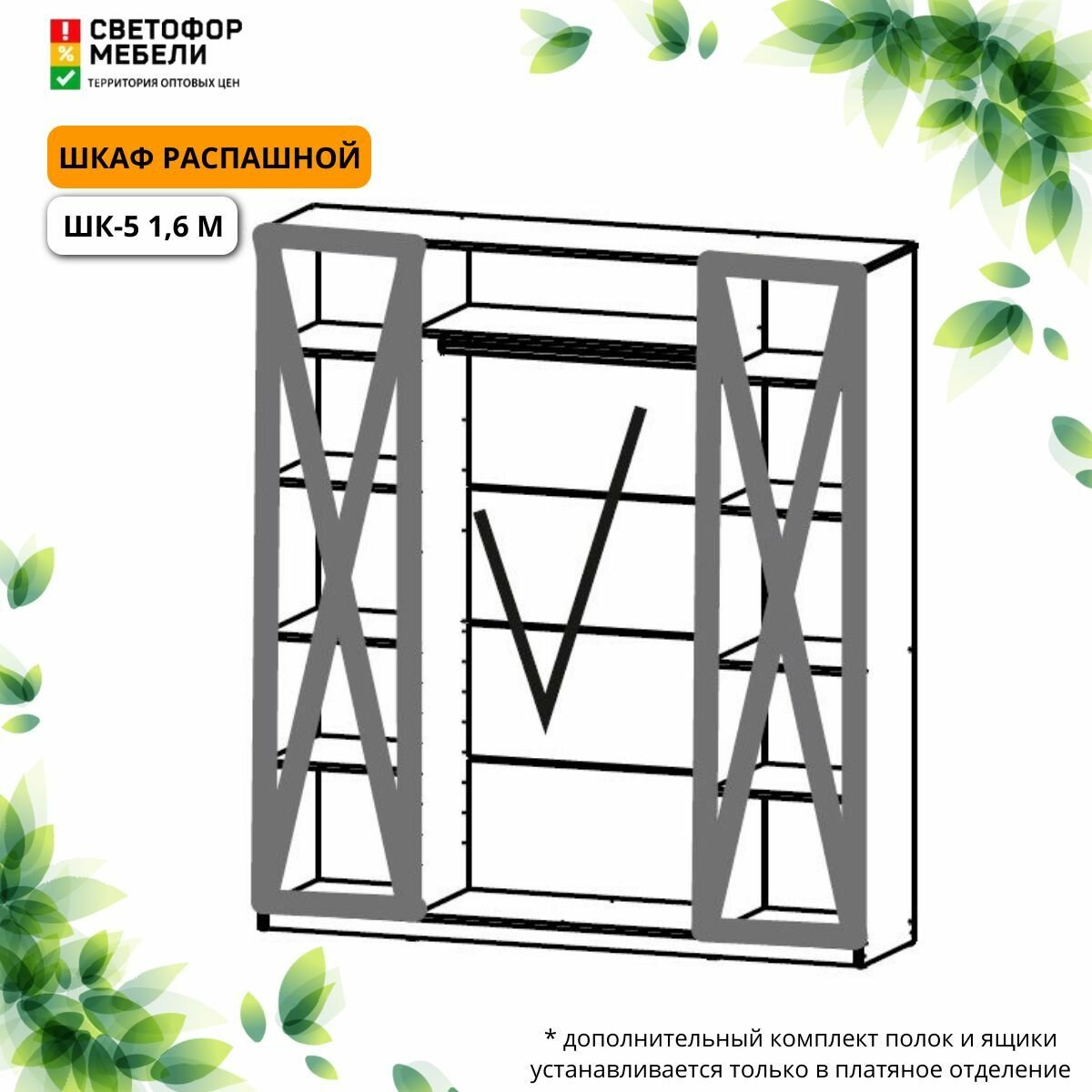 Шкаф распашной Мебельный рай ШК-5 1,6 1601х2216х506, Меланж, с комплектом полок