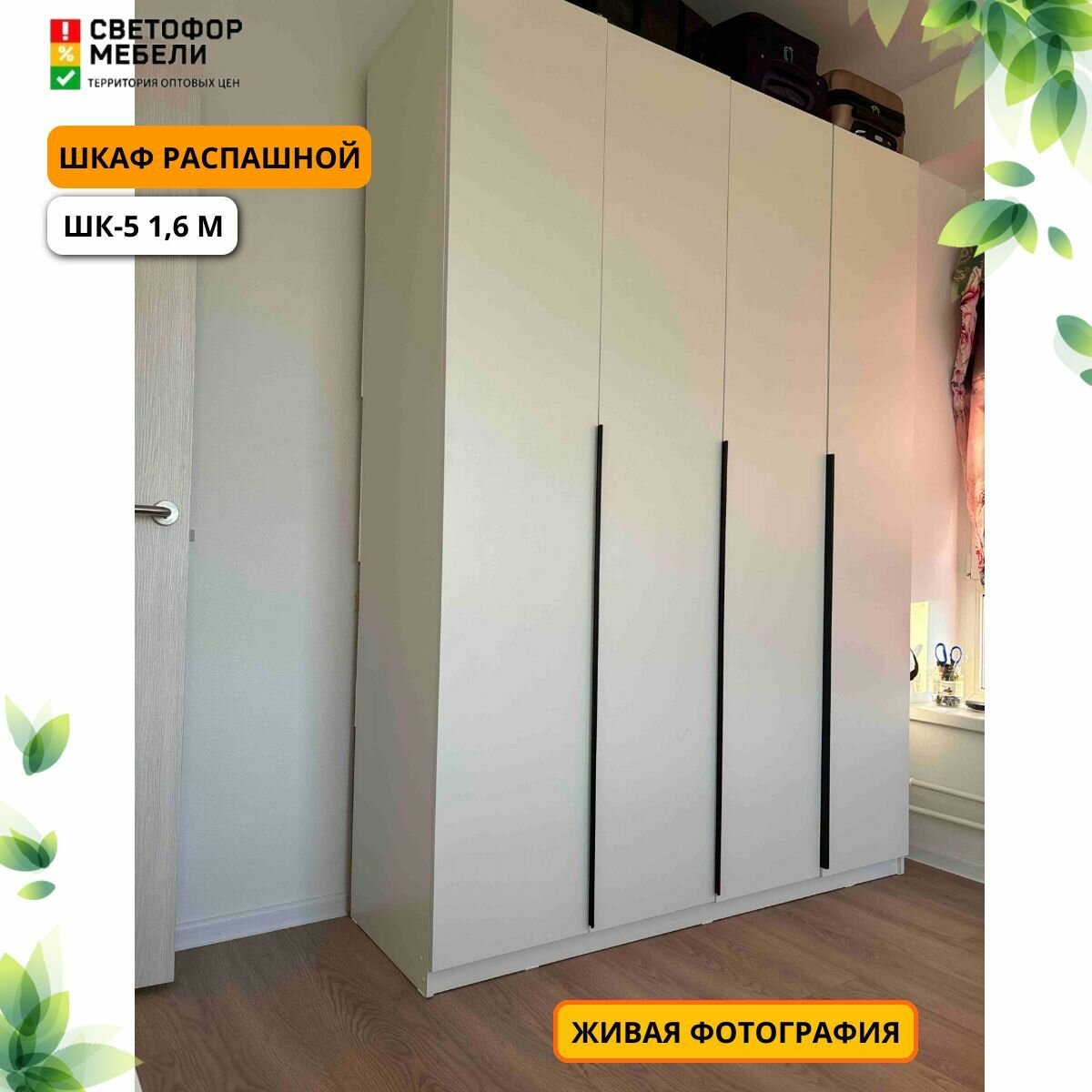 Шкаф распашной Мебельный рай ШК-5 1,6 1601х2216х506, Белый текстурный