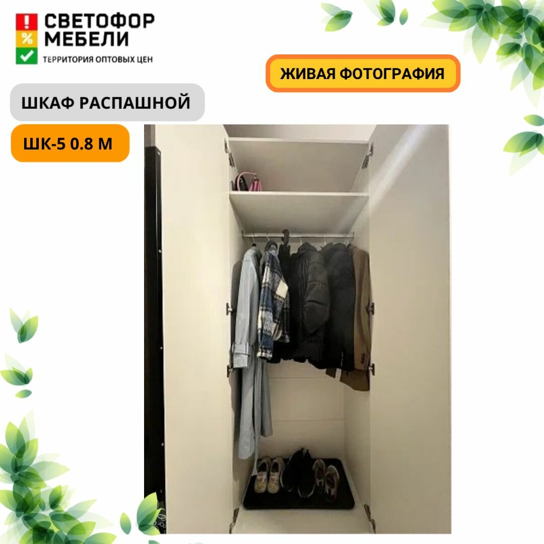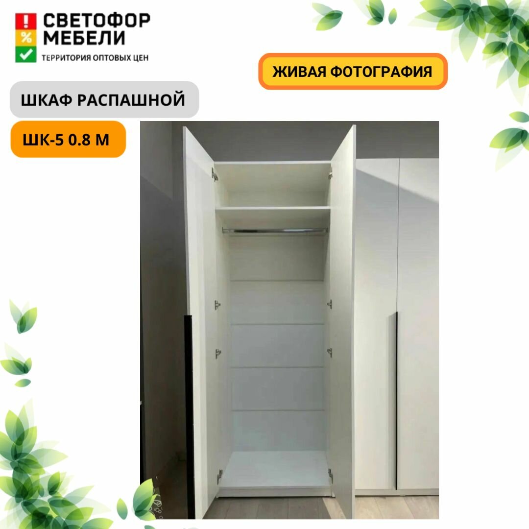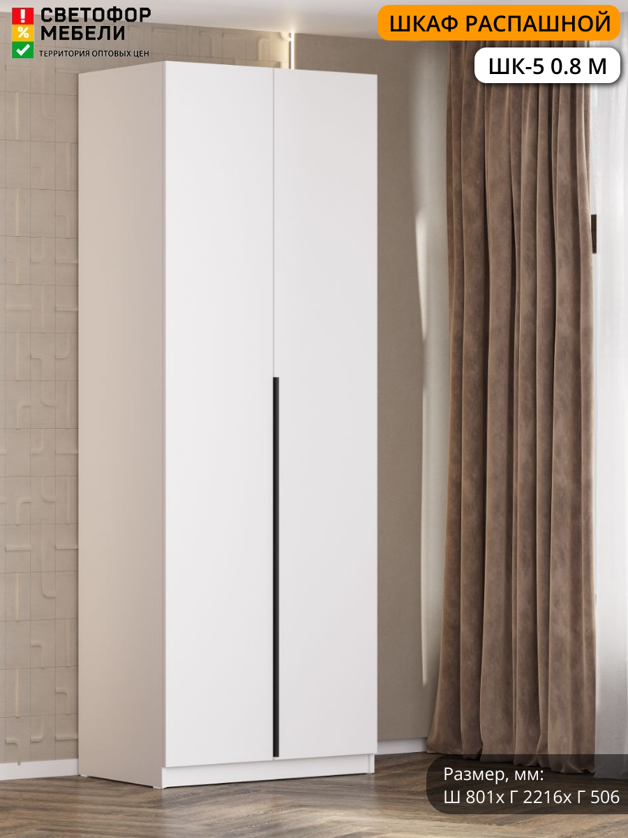 Шкаф распашной Мебельный рай ШК 5 0.8 м с полками 801х2216х506, Белый