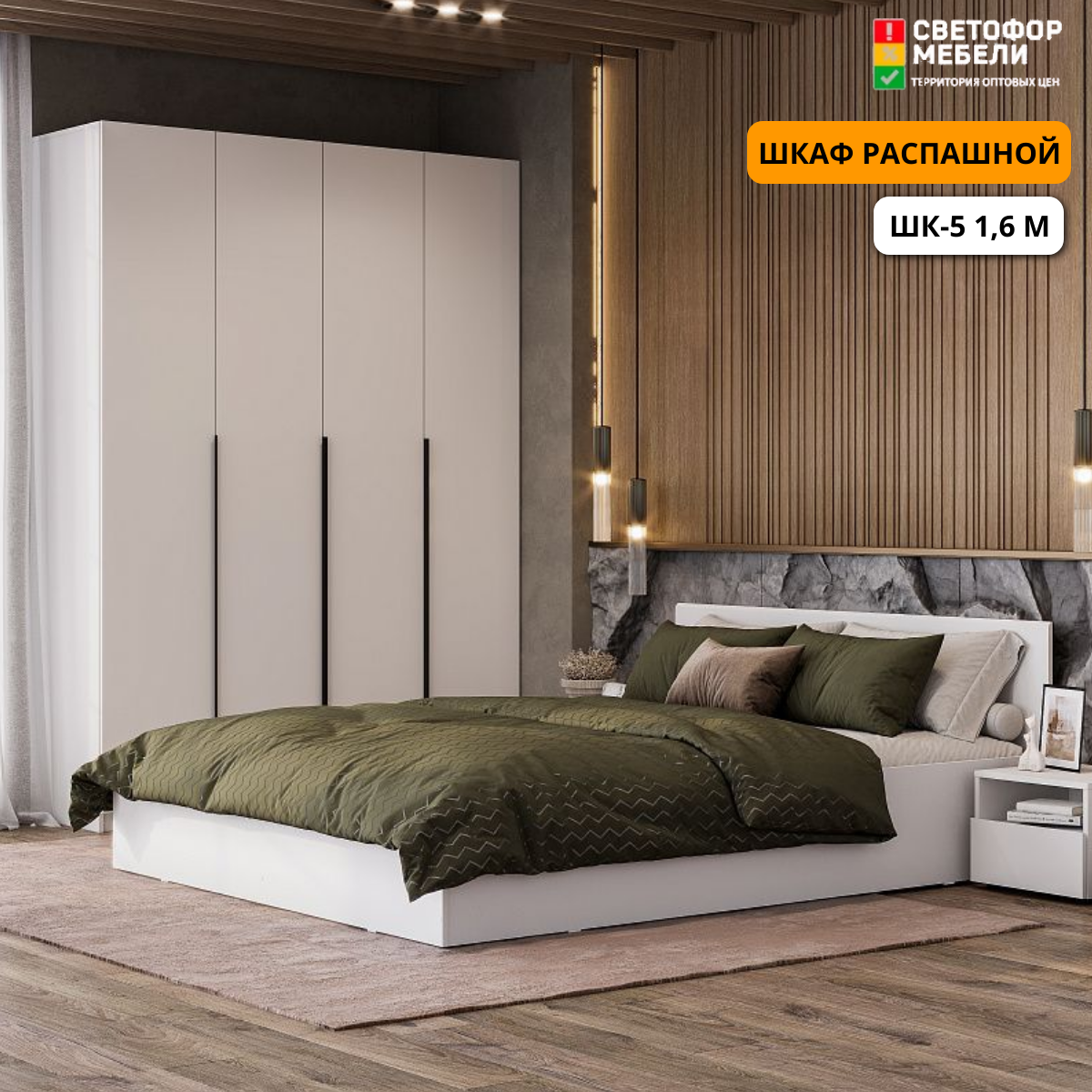 Шкаф распашной Мебельный рай ШК-5 1,6 1601х2216х506, Белый текстурный