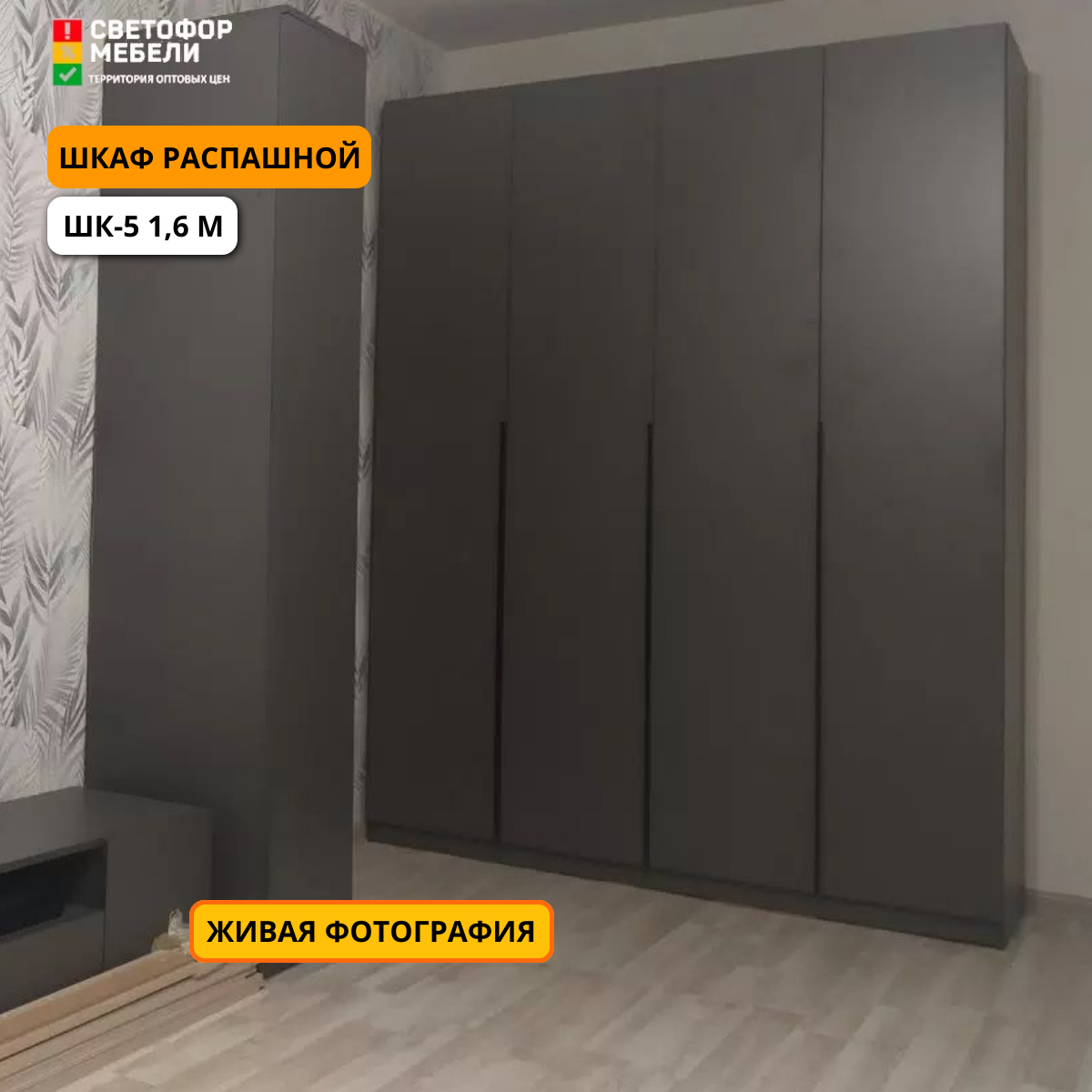 Шкаф распашной Мебельный рай ШК-5 1,6 1601х2216х506, Графит, с комплектом полок