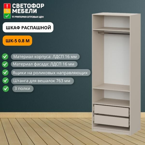 Шкаф распашной Мебельный рай ШК 5 0.8 м с 2-мя ящиками и полками 801х2216х506, Меланж
