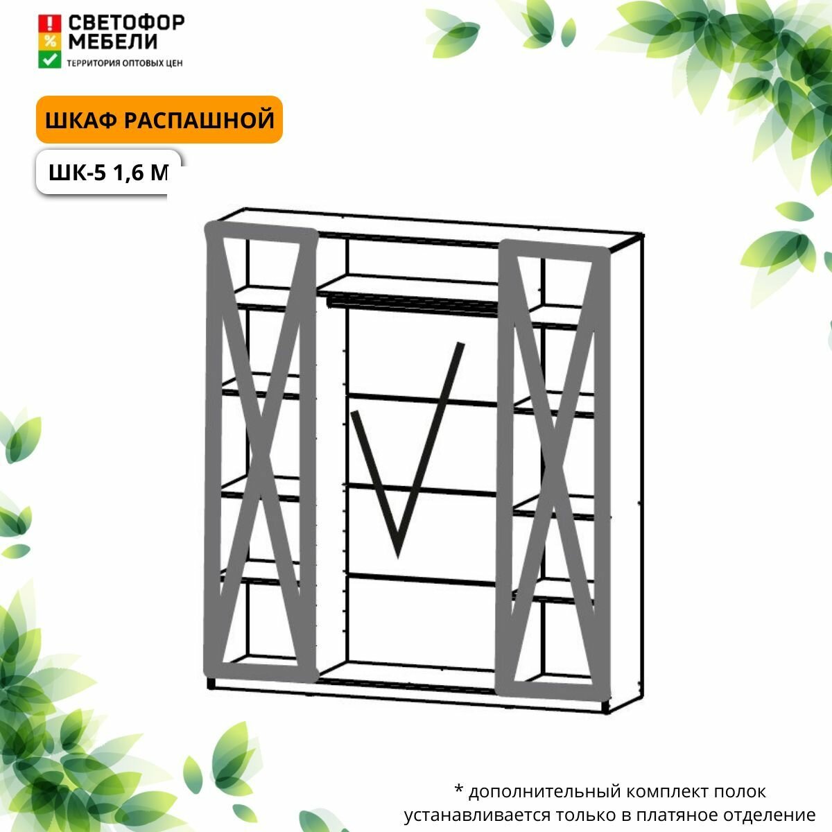 Шкаф распашной Мебельный рай ШК-5 1,6 1601х2216х506, Меланж, с комплектом полок