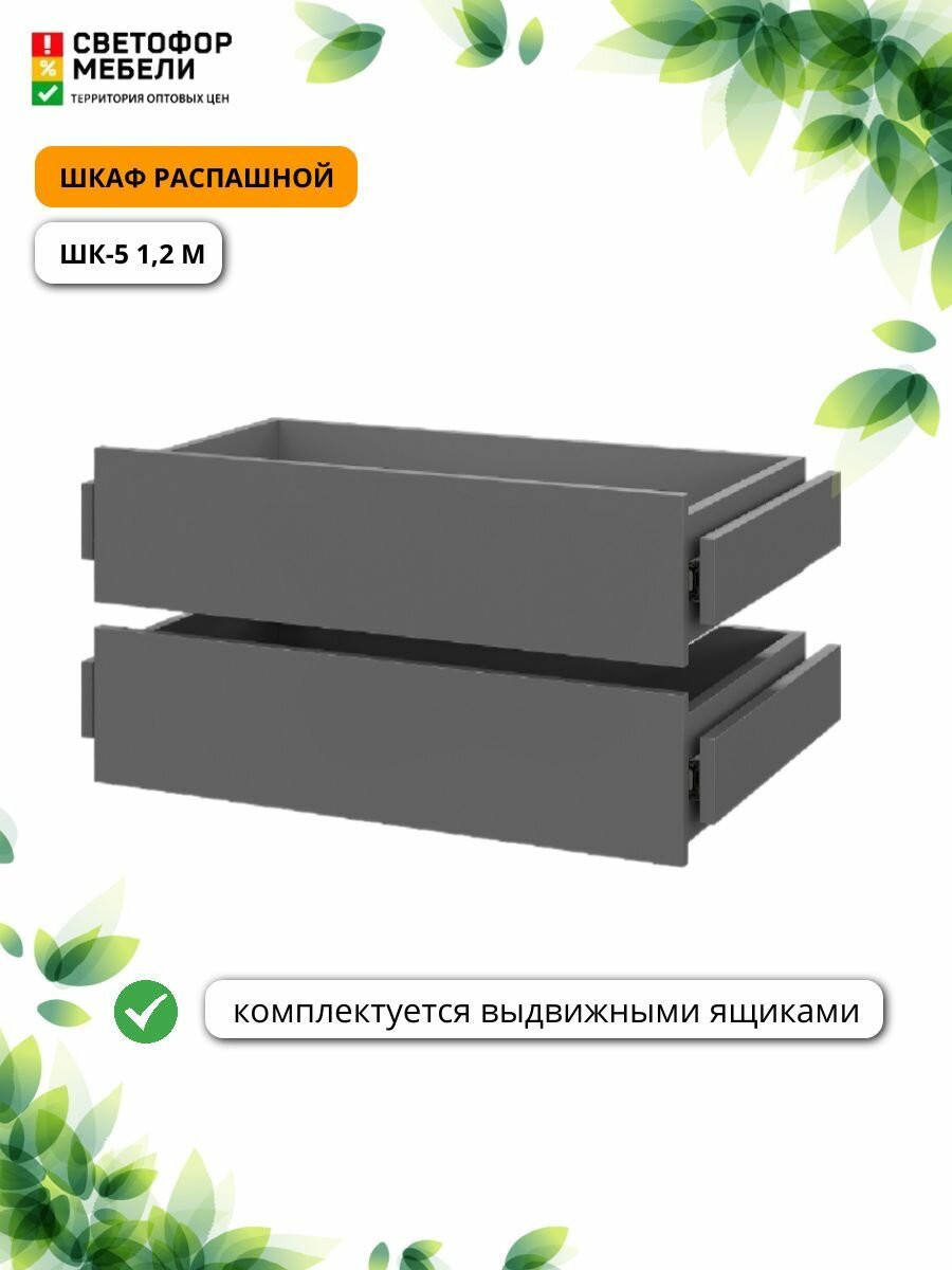 СохранитьШкаф распашной Мебельный рай ШК 5 1,2м 1201х2216х506, Графит серый, с двумя комплектами доп. полок и ящиками интересное: