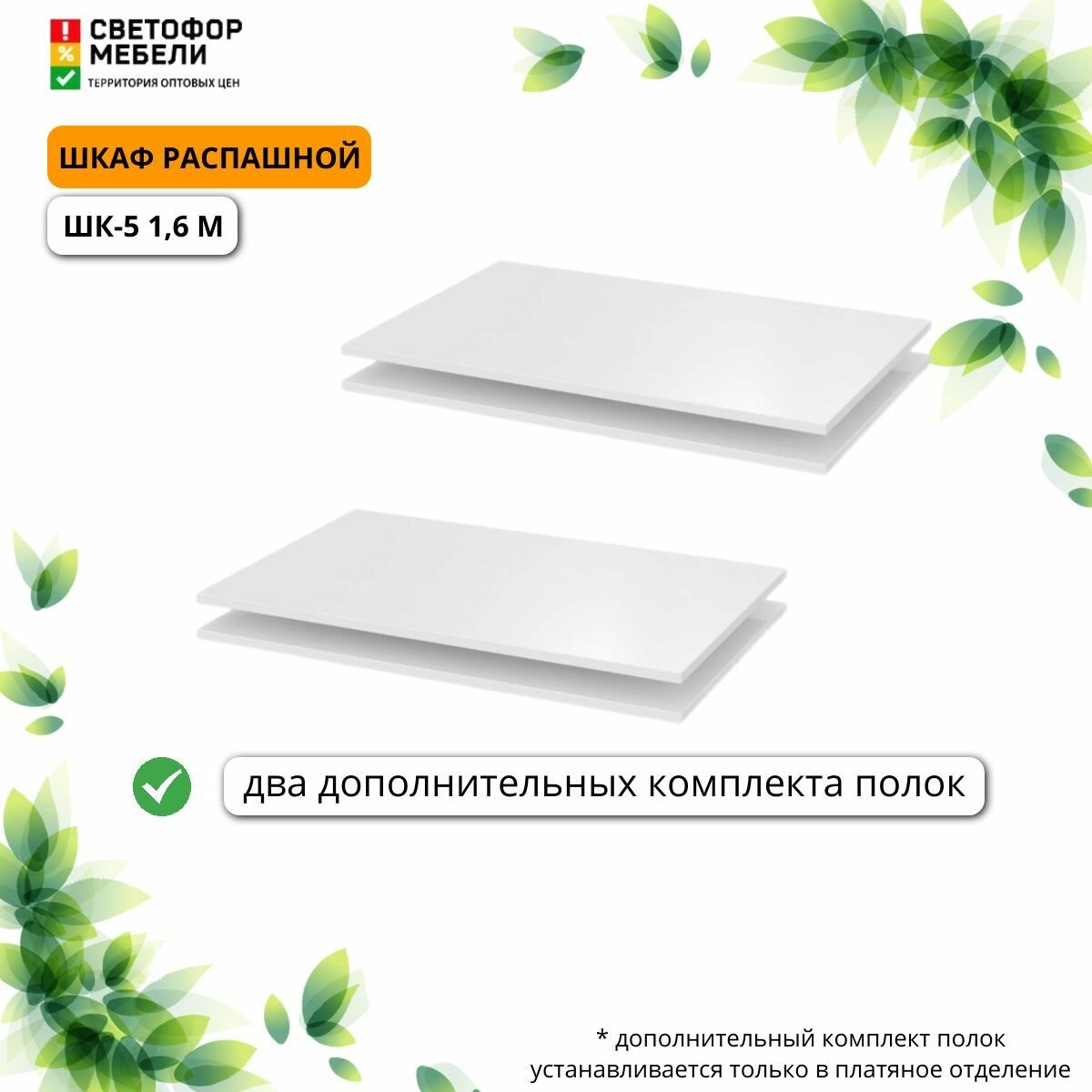 Шкаф распашной Мебельный рай ШК-5 1,6 1601х2216х506, Белый текстурный, с 2-мя комплектами полок