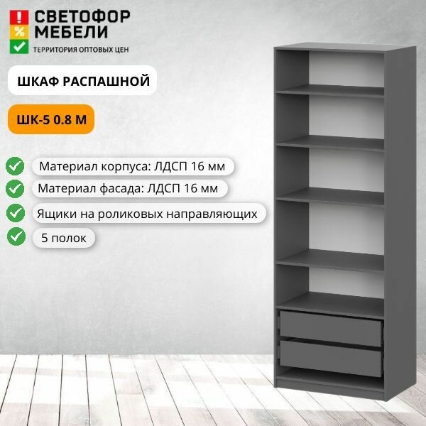 Шкаф распашной Мебельный рай ШК 5 0.8 м с полками 801х2216х506, Графит
