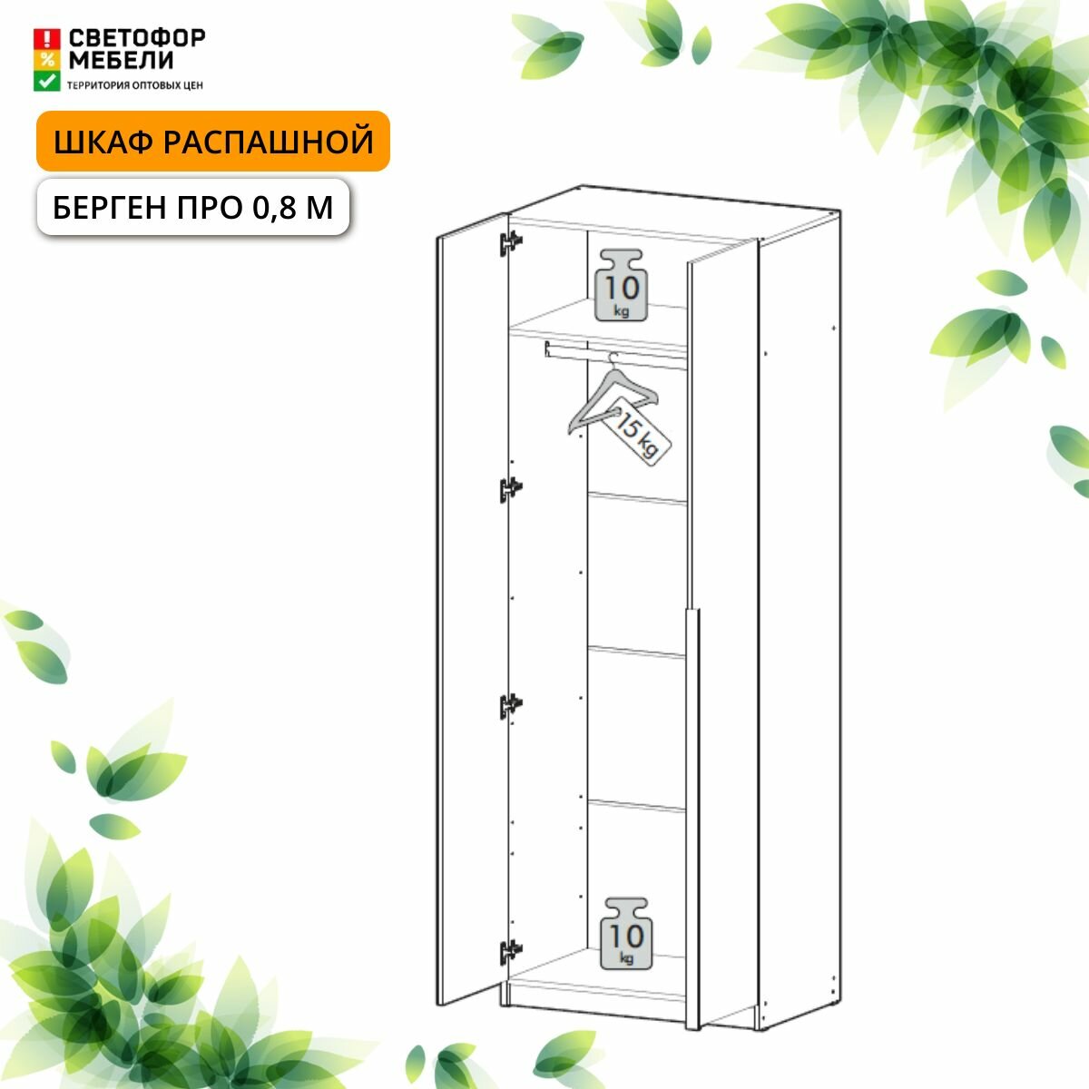Шкаф распашной Мебельный рай Берген Про 0.8 м с антресолью, штангой и полками 800х2596х506, Белое дерево интересное: