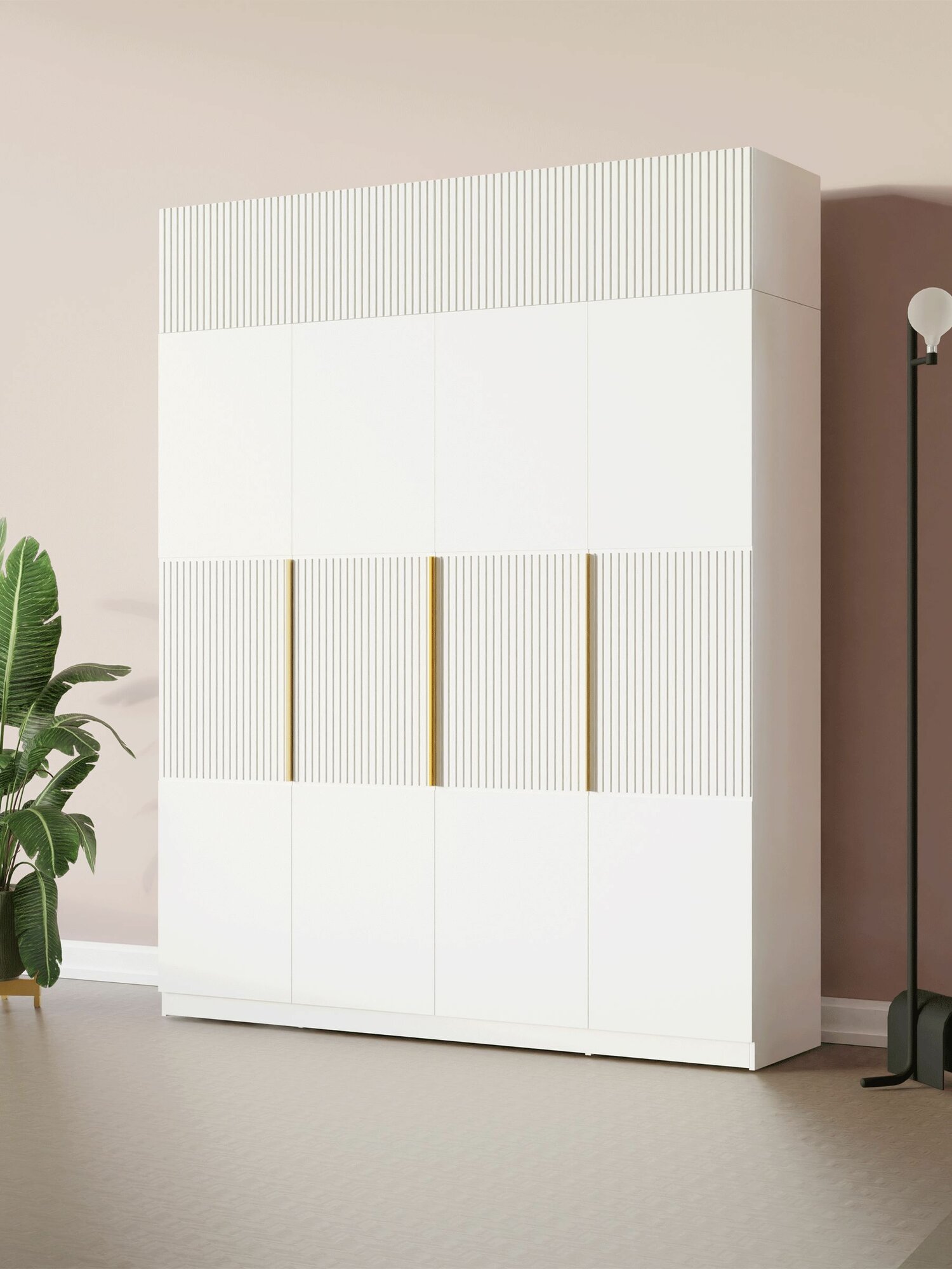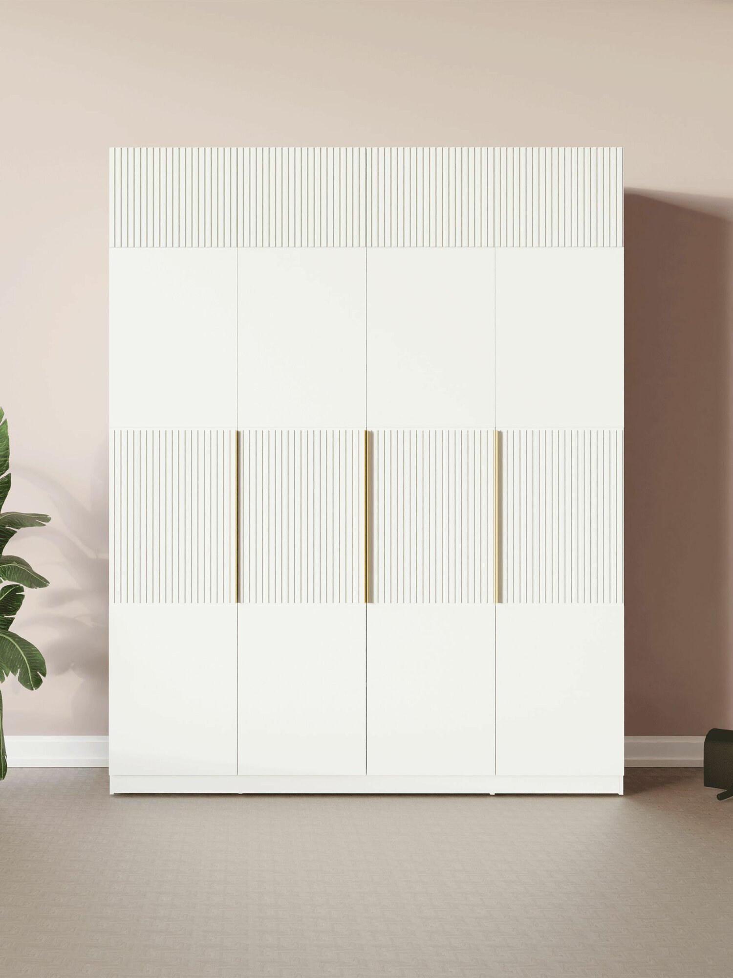 LAERA Антресоль на шкаф распашная четырехдверная белая 40 см