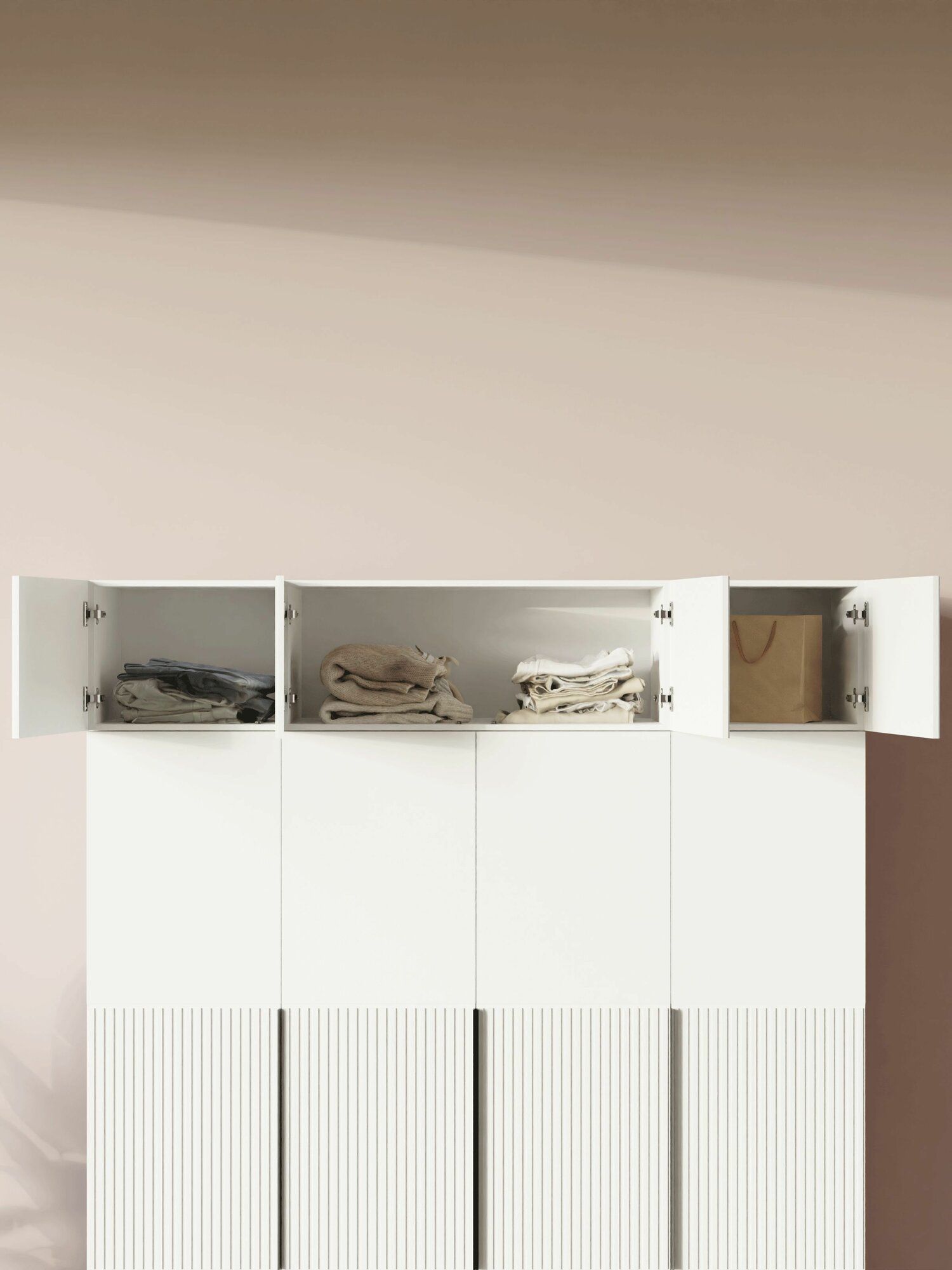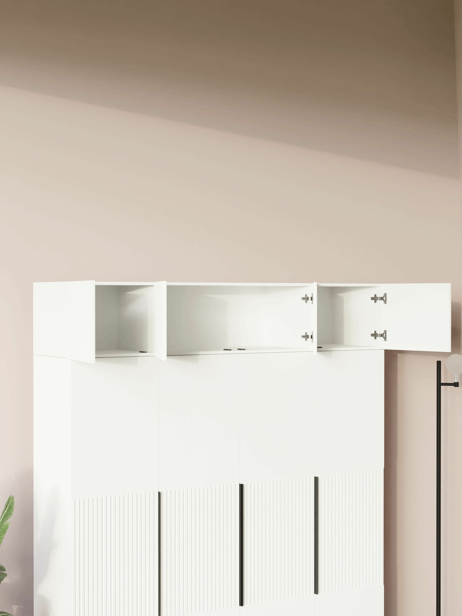 Купить LAERA Антресоль на шкаф распашная четырехдверная линии белая 40 см