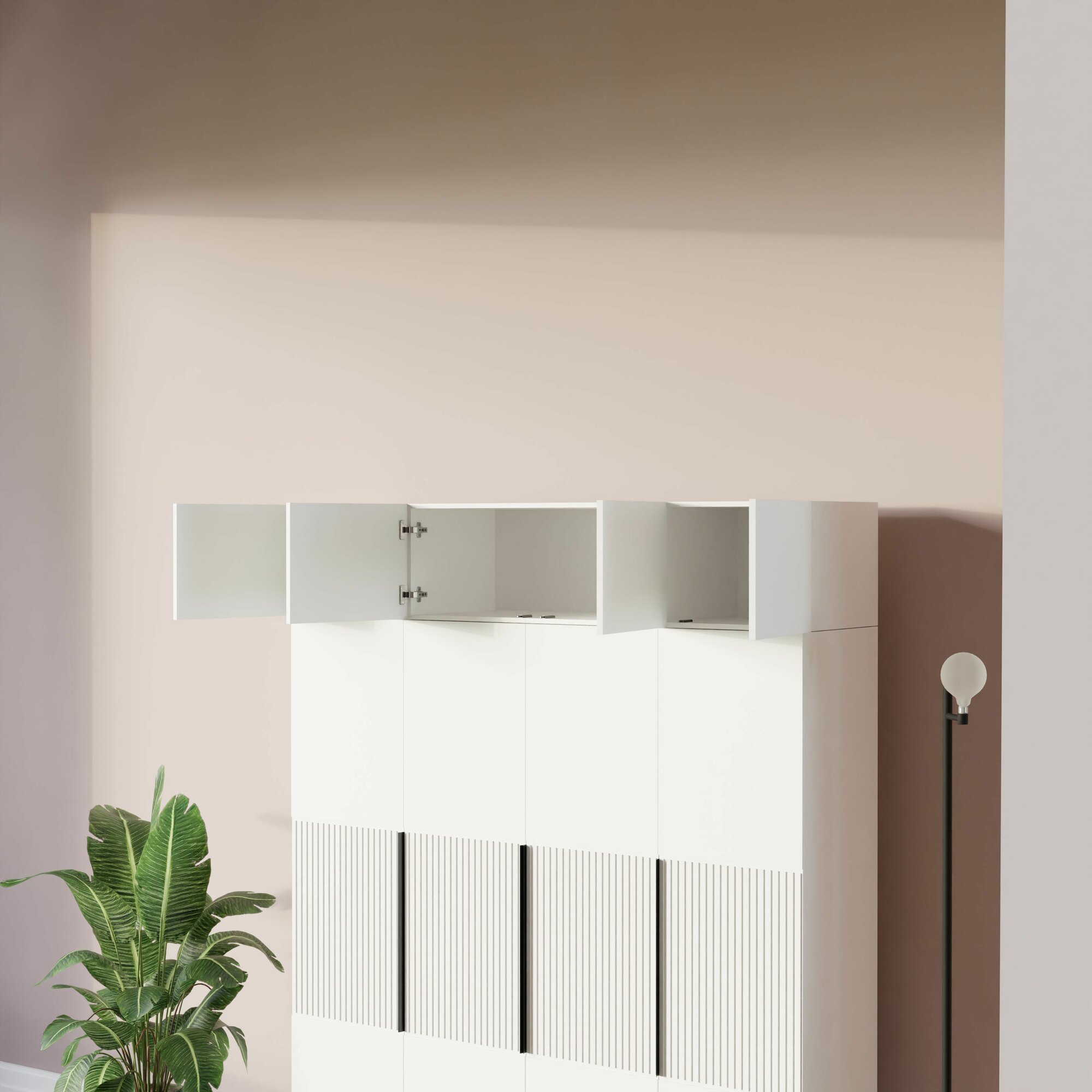 LAERA Антресоль на шкаф распашная четырехдверная белая 40 см