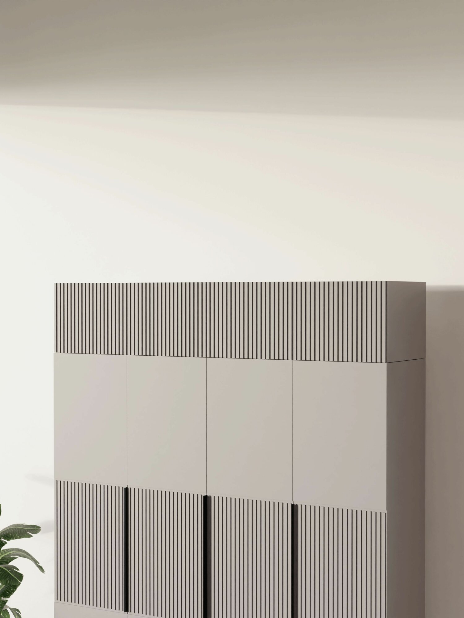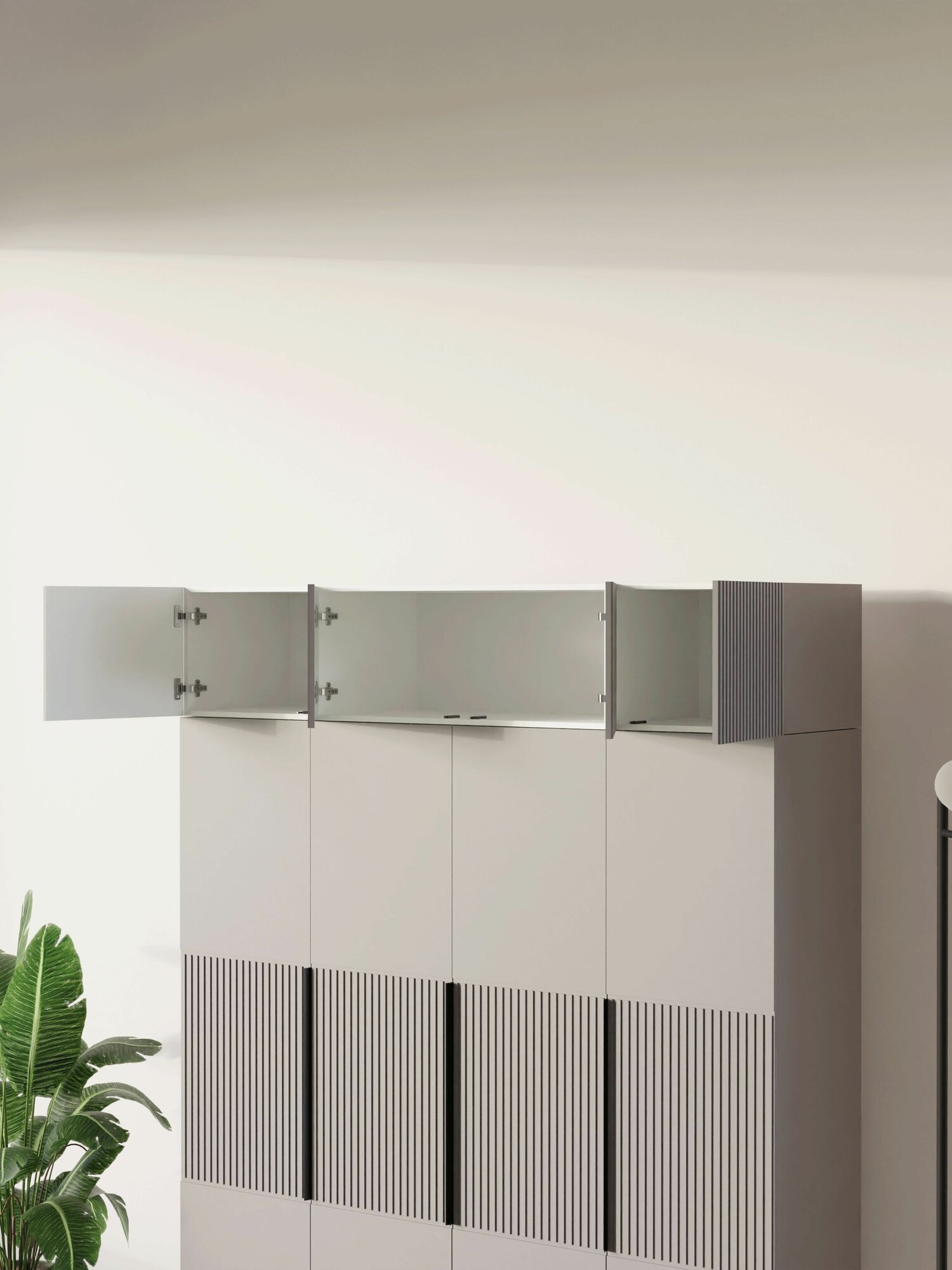 LAERA Антресоль на шкаф распашная четырехдверная линии белая 40 см