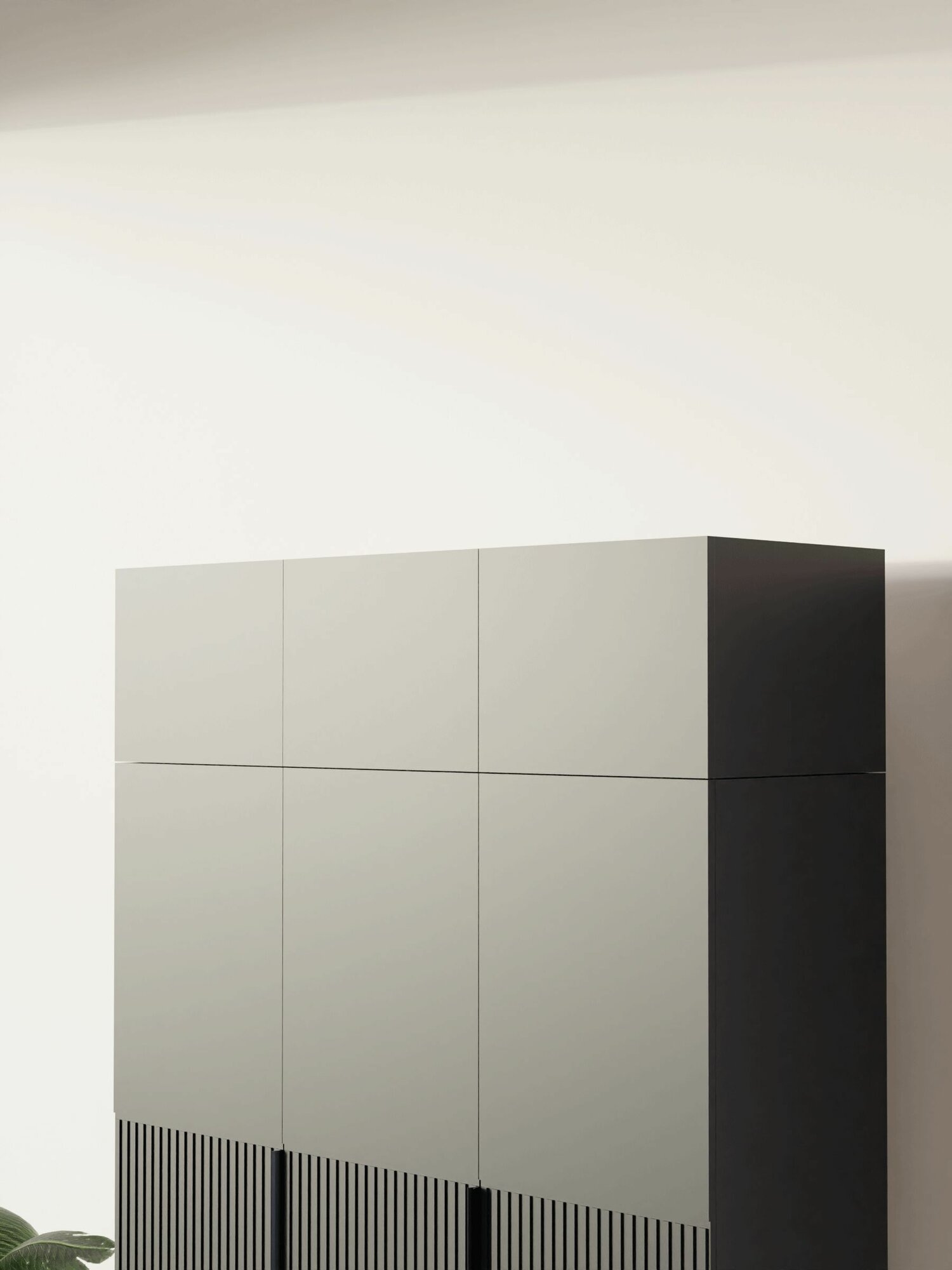 LAERA Антресоль на шкаф распашная трехдверная графит линии