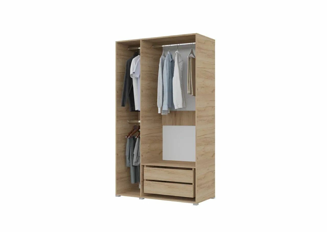 Шкаф для одежды распашной Нонтон Луас, 120 см, 7 полок и штанга, белый глянец