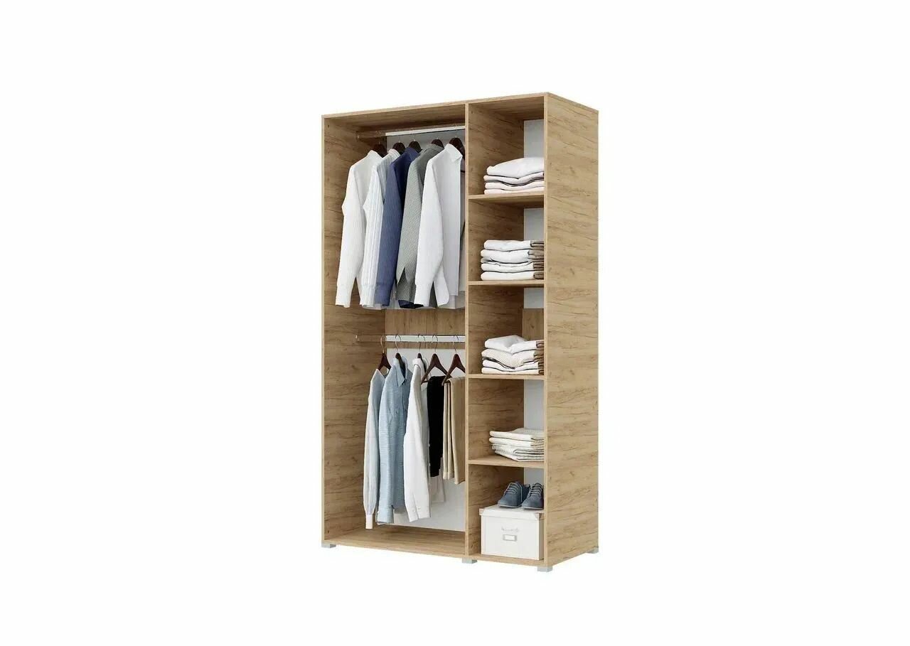 Шкаф для одежды распашной Нонтон Луас, 120 см, 7 полок и штанга, белый глянец