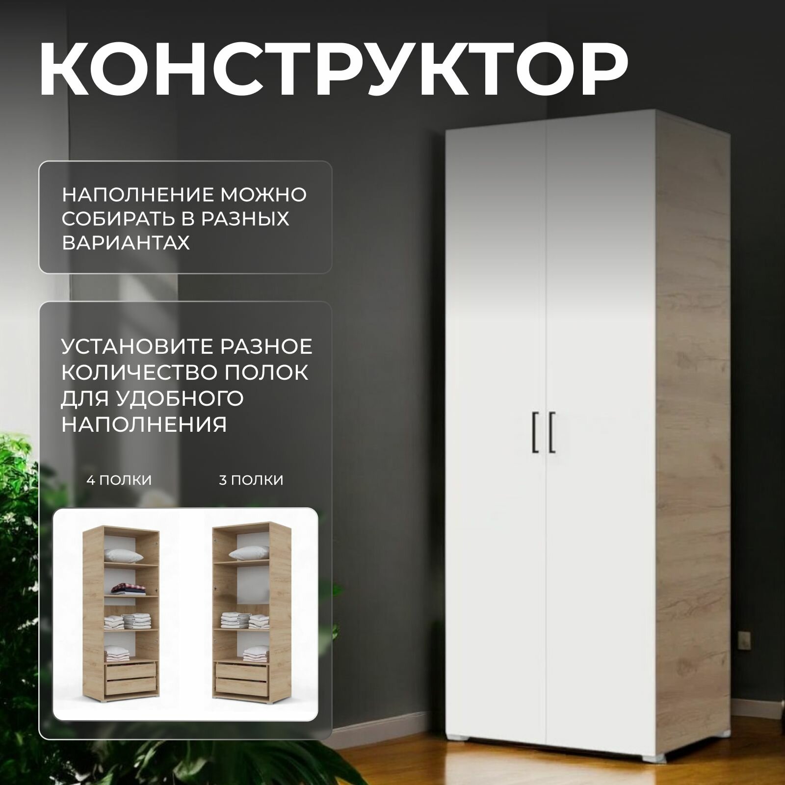 Шкаф распашной, гардероб, шкаф для одежды ШК 2/7 60/210/52 см Шимо темный/Шимо светлый