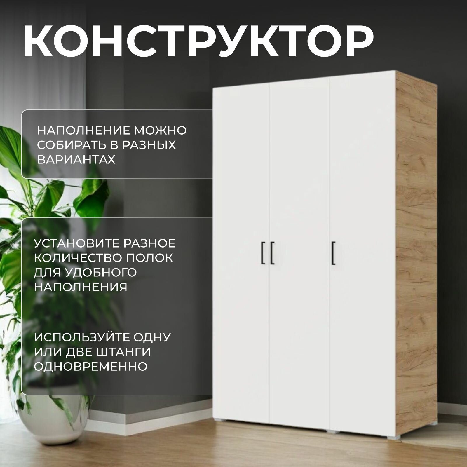 СохранитьШкаф распашной 3-х створчатый Бостон 120 Б с полками, крафт золотой/белый интересное: