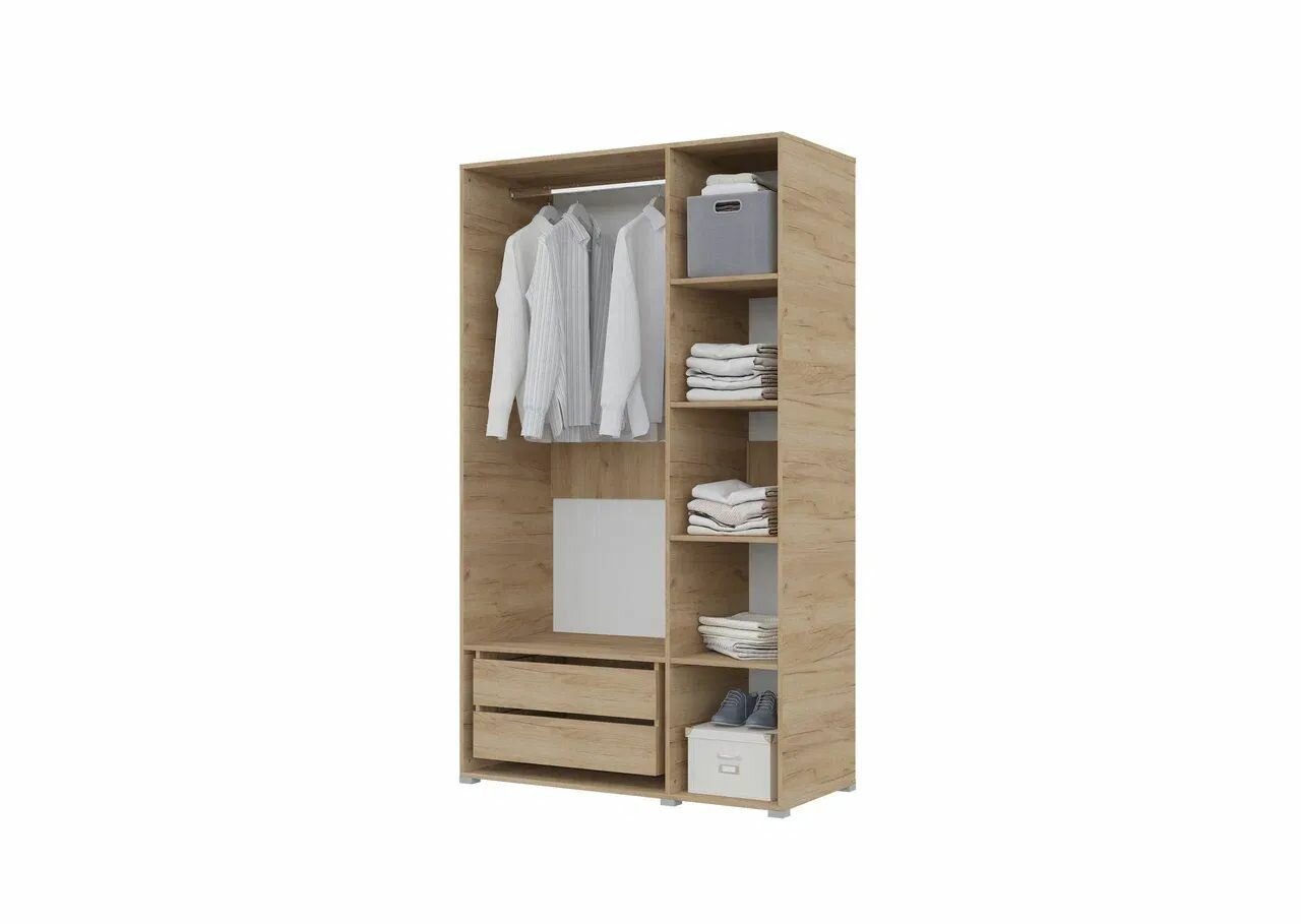 Шкаф для одежды распашной Нонтон Луас, 120 см, 7 полок и штанга, белый глянец