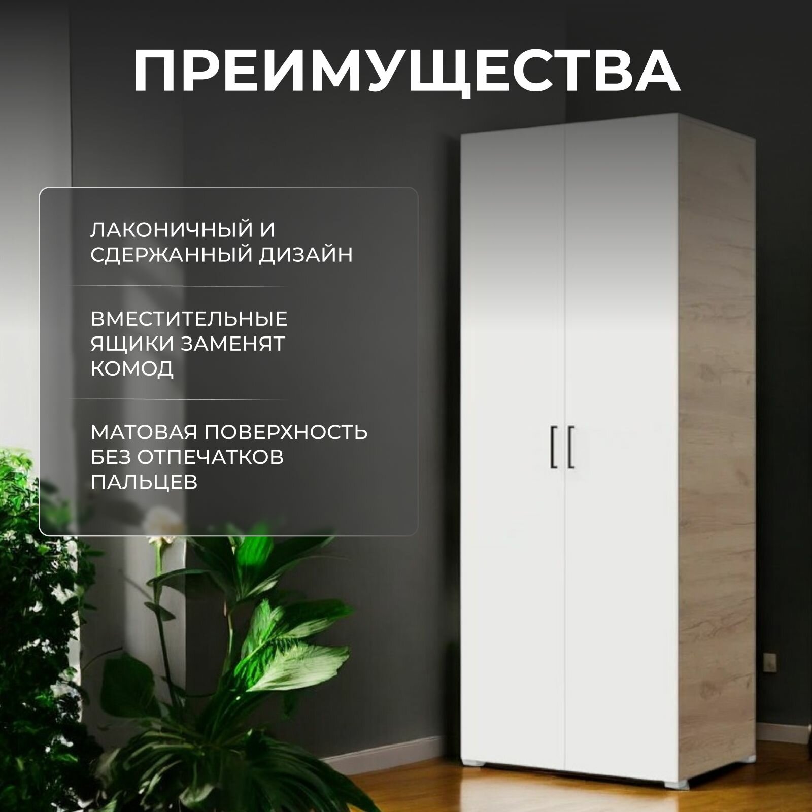 Шкаф распашной Мори-4 Белый для одежды двухдверный 70*200*40 Мегамебель