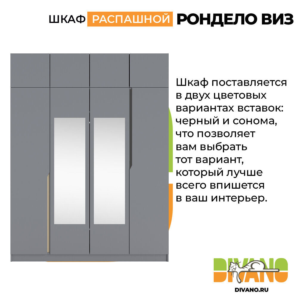 СохранитьШкаф распашной Рондело виз 4-х дверный с антресолью и 2-мя зеркалами 2.0 м (графит) интересное:
