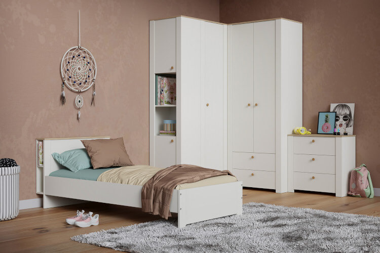 Шкаф распашной с ящиками и штангой Джастин 13.339 цвет белый шагрень/дуб белый эксклюзив, ШхГхВ 86х54,8х225,8 см