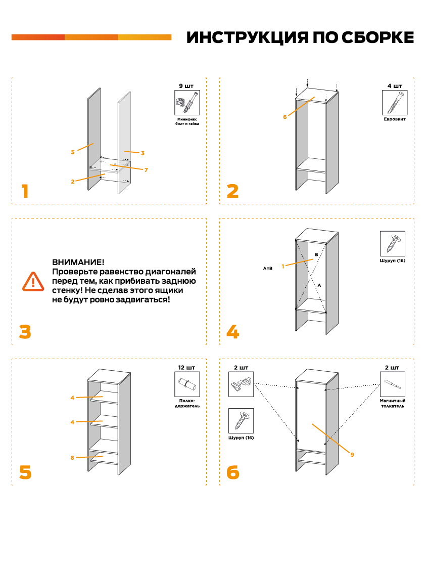 Шкаф для одежды распашной Нонтон Луас, 120 см, 7 полок и штанга, белый глянец