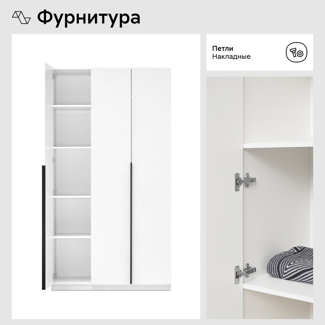 Шкаф для одежды распашной Нонтон Луас, 120 см, 5 полок и штанга, белый глянец