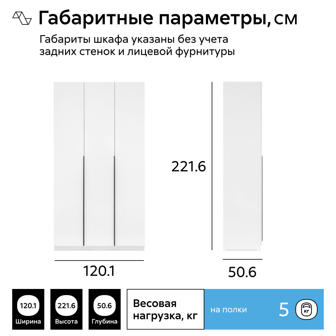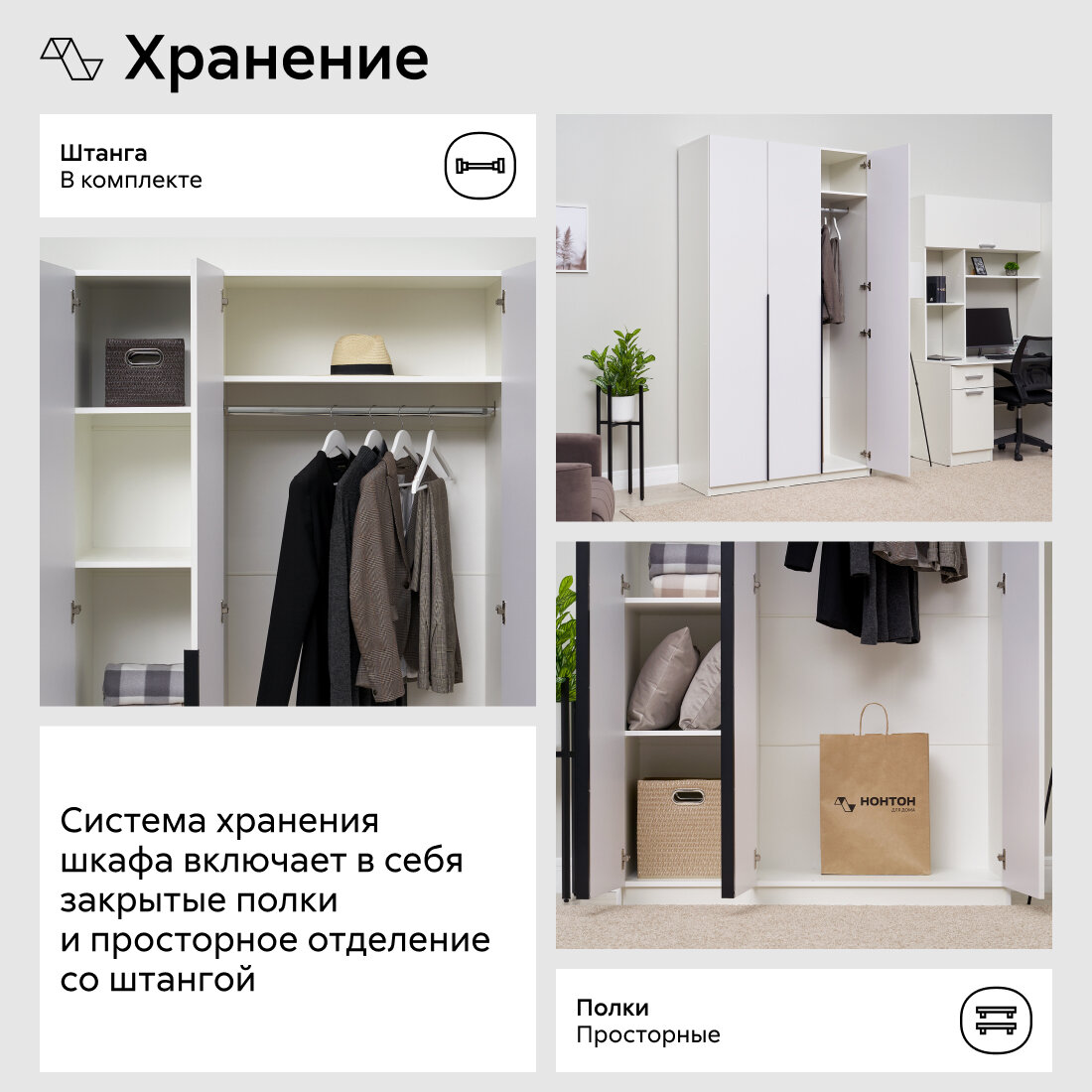 Шкаф для одежды распашной Нонтон Луас, 120 см, 5 полок и штанга, белый глянец интересное: