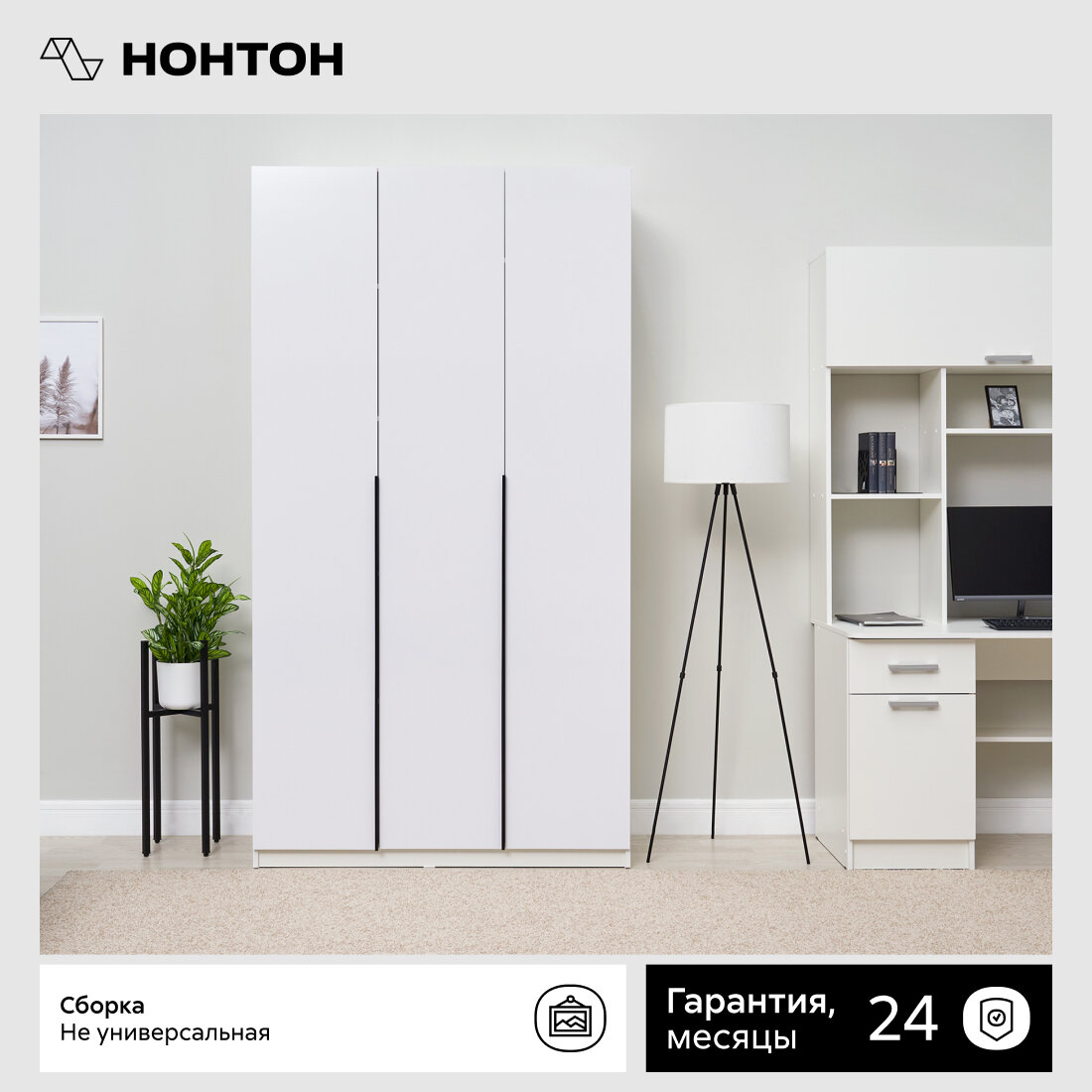 Шкаф для одежды распашной Нонтон Луас, 120 см, 7 полок и штанга, белый глянец