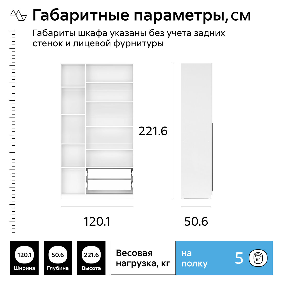Шкаф для одежды распашной Нонтон Луас, 120 см, 9 полок и 2 ящика, белый глянец интересное: