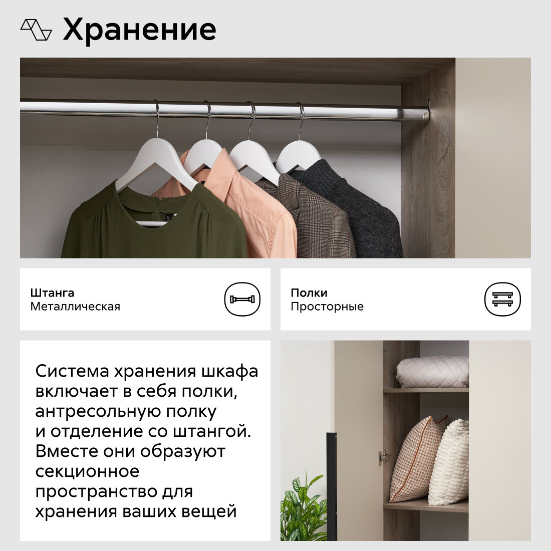 СохранитьШкаф для одежды распашной Нонтон Луас, с антресолью, 120 см, 5 полок и штанга, эндгрейн / меланж интересное: