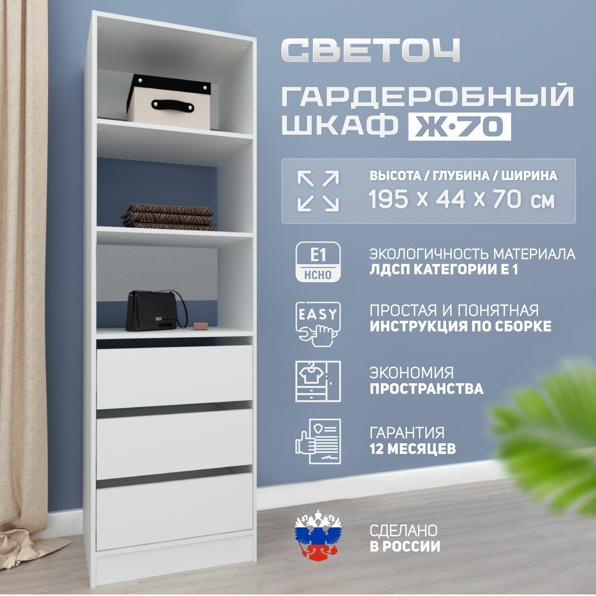 СохранитьГардеробный шкаф Светоч Ж70, ЛДСП, 70х44х194, Белый интересное: